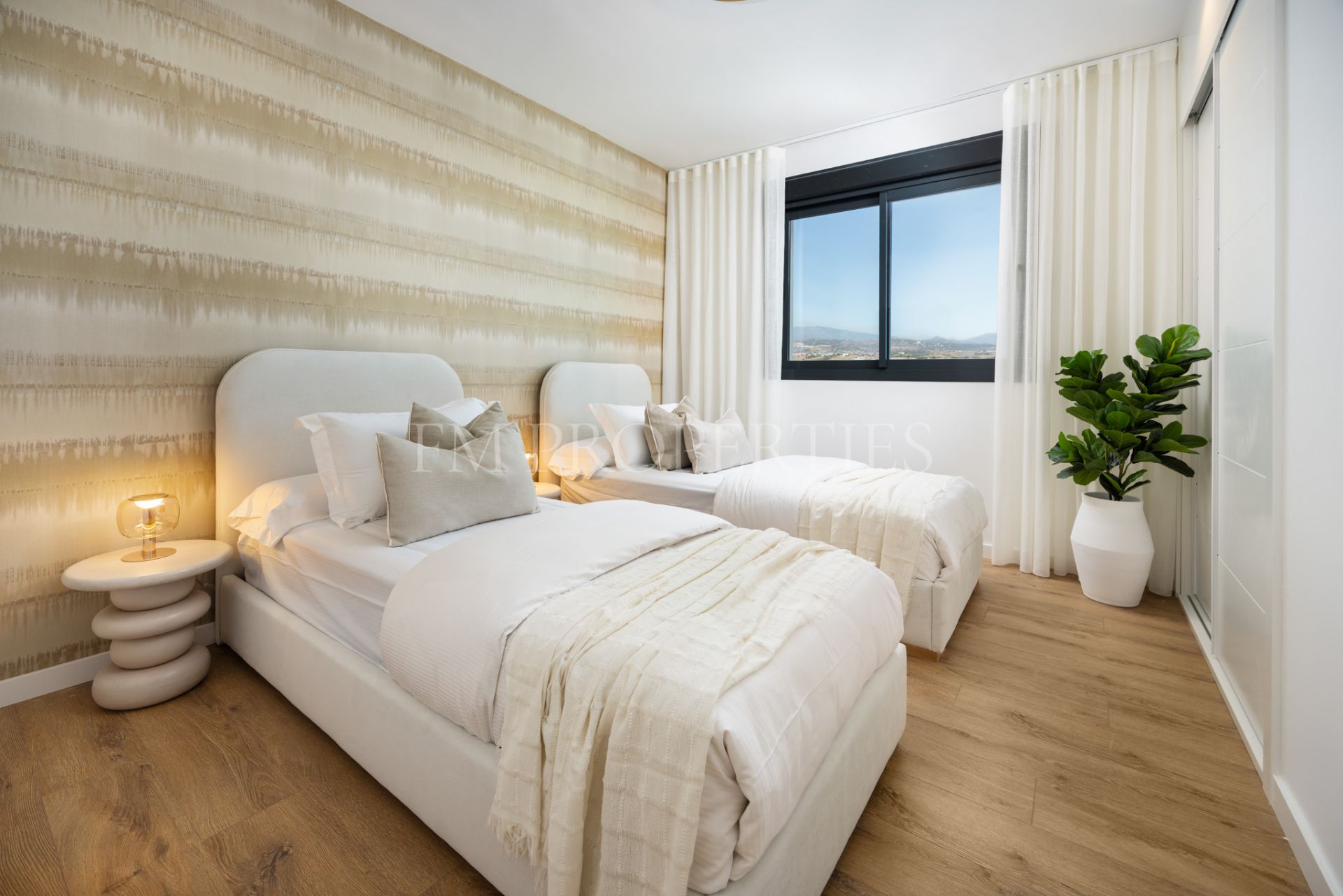 Esta residencia forma parte de un exclusivo conjunto de solo 51 apartamentos y áticos de 2 y 3 dormitorios, distribuidos en seis elegantes edificios de arquitectura moderna. Cada vivienda destaca por su amplitud, luminosidad y acabados meticulosos. Las estancias principales fluyen con naturalidad hacia las terrazas, creando una sensación de continuidad entre interior y exterior, ideal para disfrutar del clima templado de la Costa del Sol durante todo el año.