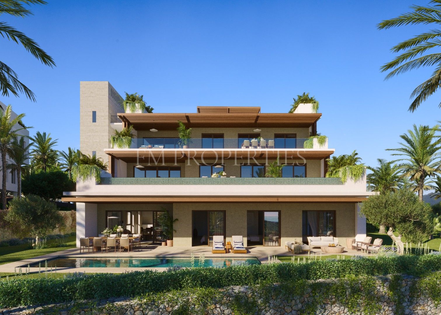 Con una superficie interior de más de 230 m², esta vivienda ha sido diseñada para ofrecer espacios generosos y funcionales. Dispone de 3 dormitorios y 3,5 baños, con un elegante salón-comedor de planta abierta que conecta de forma fluida con las amplias terrazas. La luz natural recorre cada estancia, realzando los acabados en piedra natural y maderas nobles, y creando una atmósfera cálida y sofisticada en la que cada detalle ha sido cuidadosamente concebido.