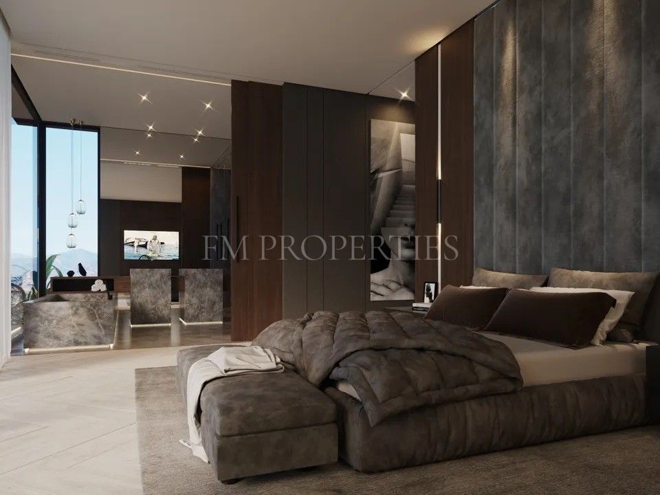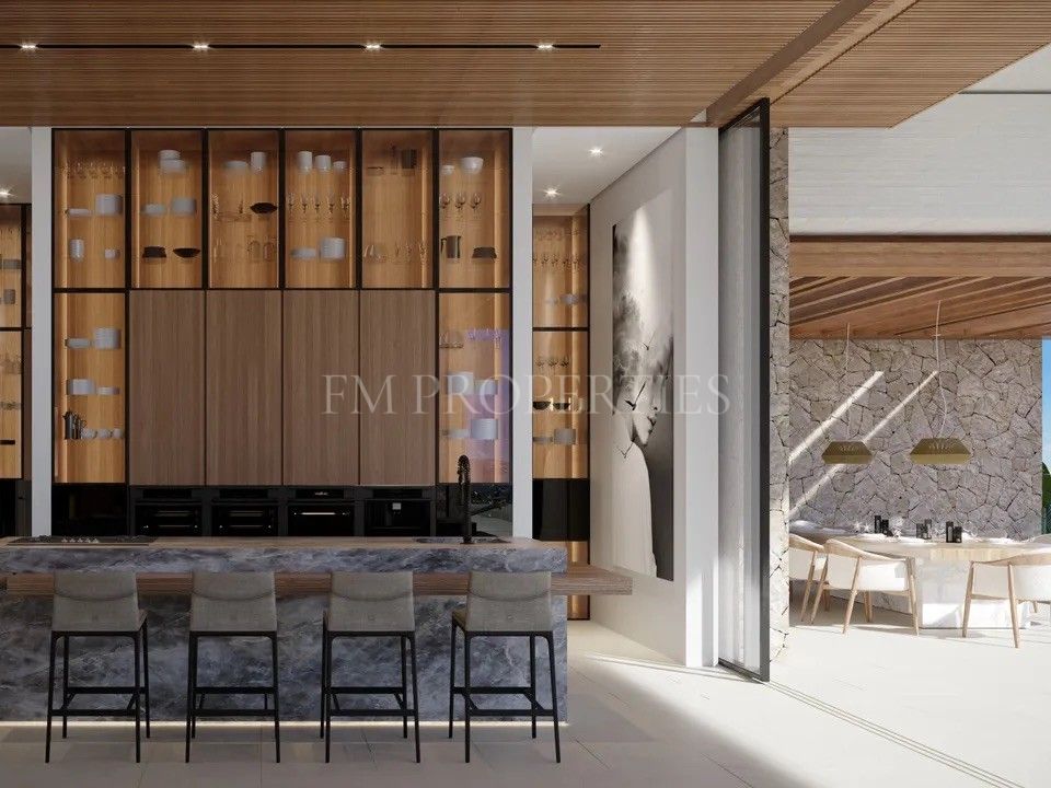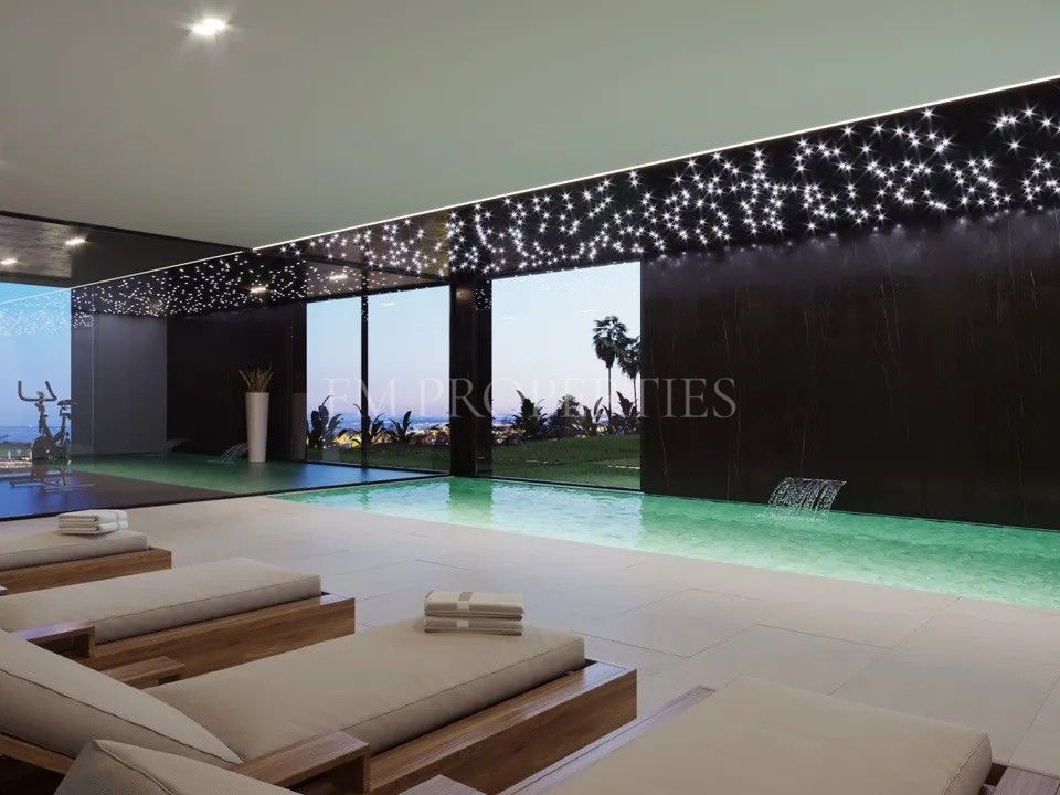 With a layout designed for maximum comfort, Villa Bond features spacious indoor and outdoor areas that cater to your every need. The property includes 4 en-suite bedrooms, each with open sea views and direct access to private terraces. The main living room, bathed in natural light thanks to floor-to-ceiling windows, flows seamlessly into the outdoors, where an infinity pool invites you to relax while taking in the horizon. Additionally, the villa includes a private gym, an office with independent access, and an indoor pool for year-round enjoyment.