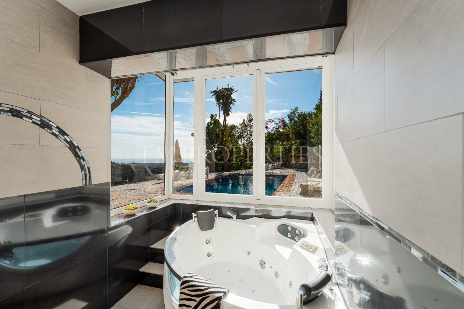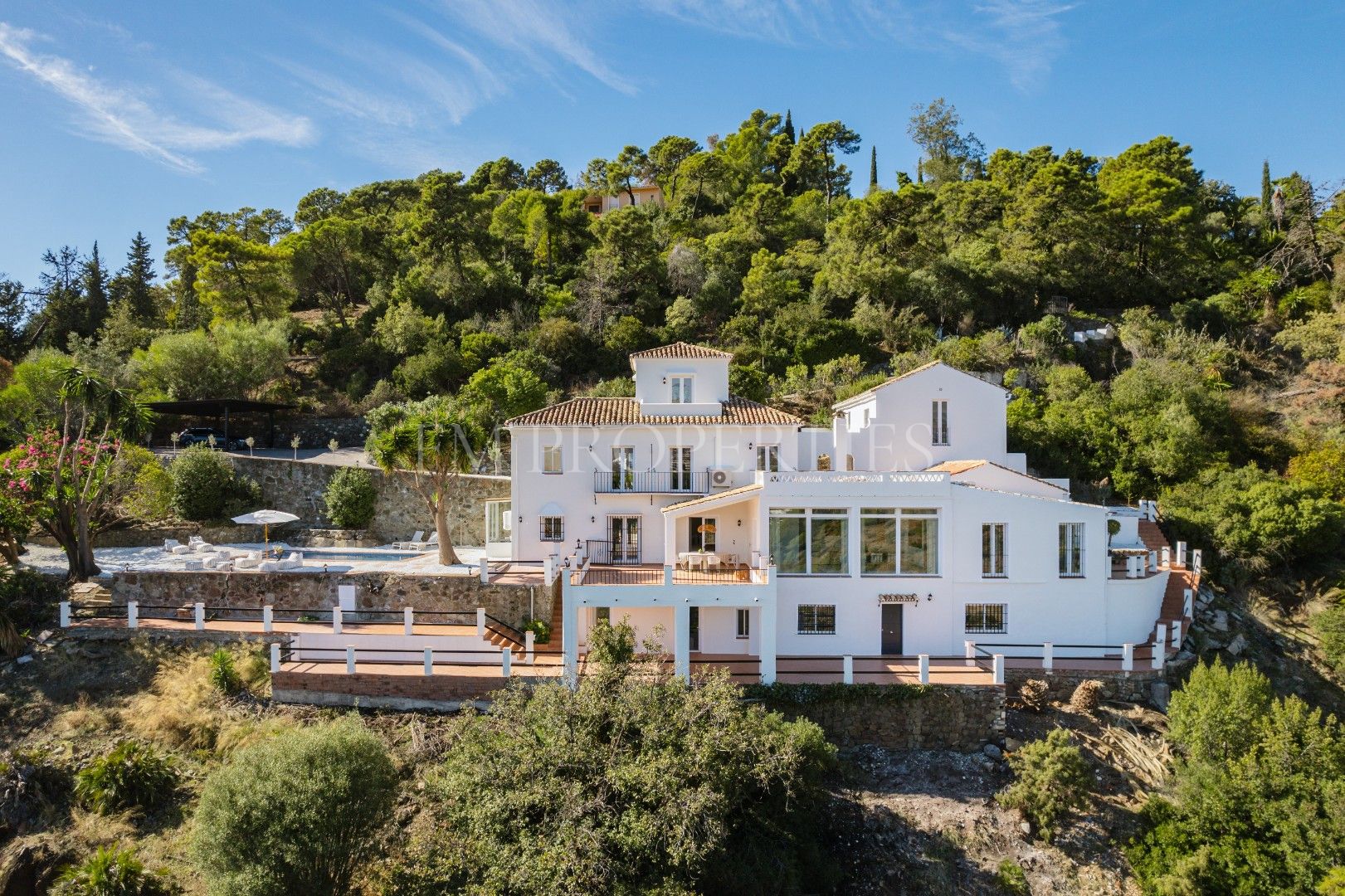 At the top of the coveted private community of El Madroñal, this stunning Andalusian villa in El Madroñal rises among pine-covered hills and open skies, offering serene landscapes that blend with the Mediterranean Sea in the distance. Each sunrise lights up its terraces and natural surroundings, while the panoramic sea and mountain views immerse the property in a sense of privacy, spaciousness, and beauty—inviting you to imagine a life of calm, sophistication, and harmony with nature.