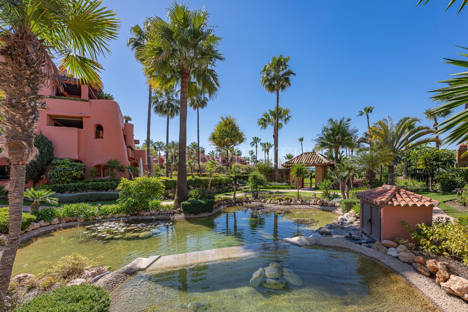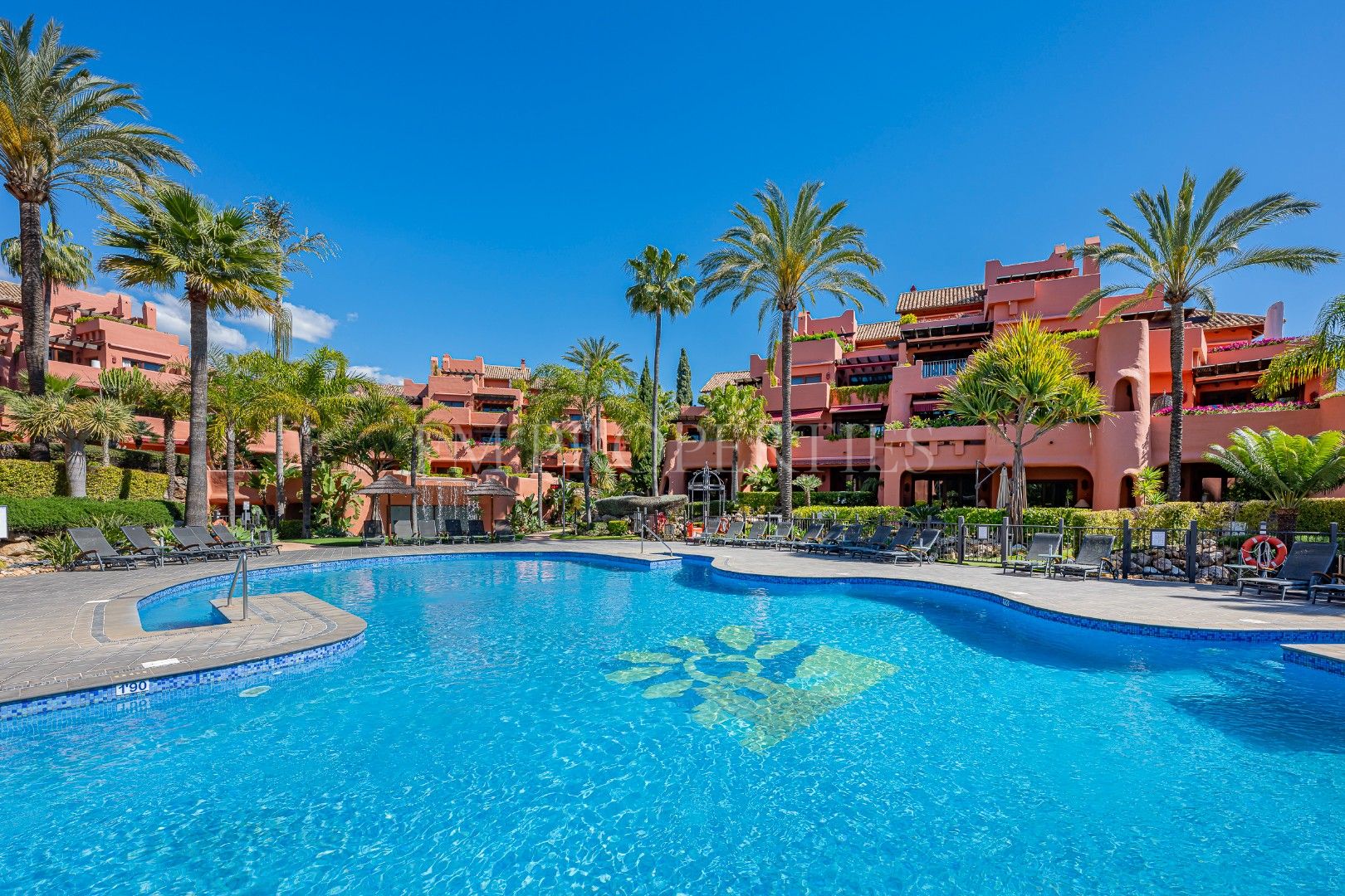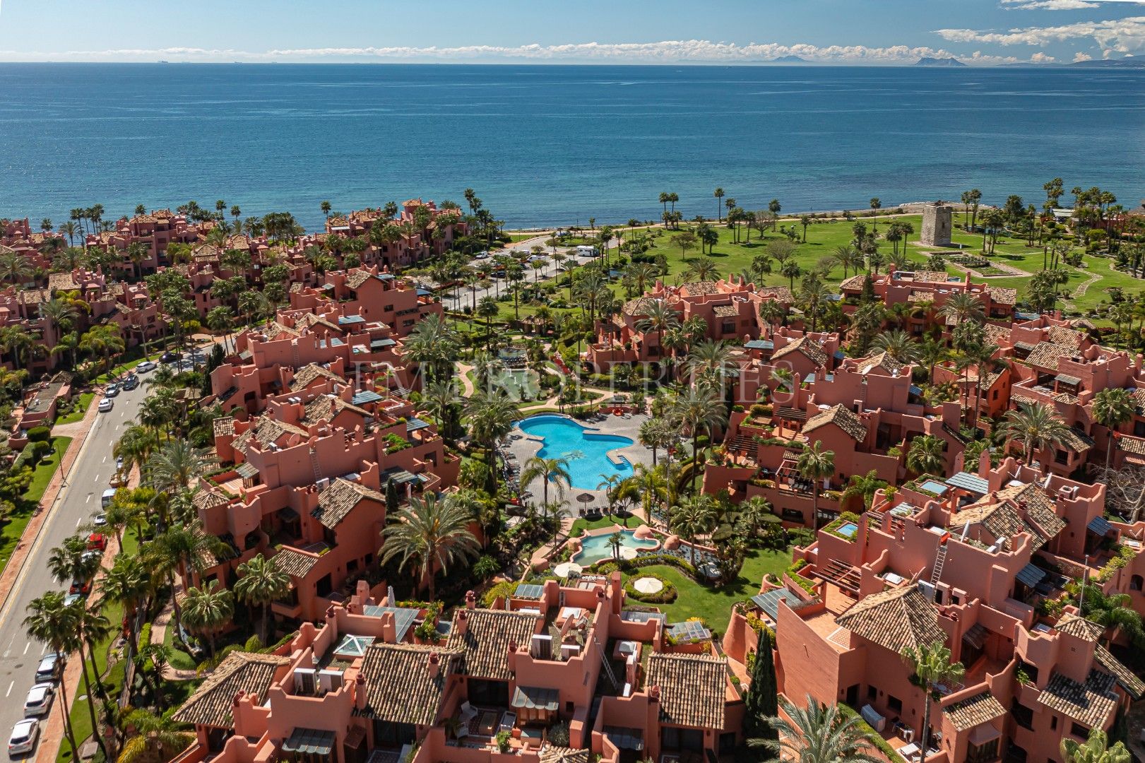 Living on Marbella’s Golden Mile is a privilege reserved for very few. This exclusive duplex penthouse on the Golden Mile combines the timeless charm of Andalusian architecture with the sophistication of contemporary design. Its spacious terraces, featuring a private jacuzzi and high-end outdoor furniture, allow you to enjoy unforgettable sunsets over the Mediterranean, creating a unique environment where luxury, comfort, and nature merge.