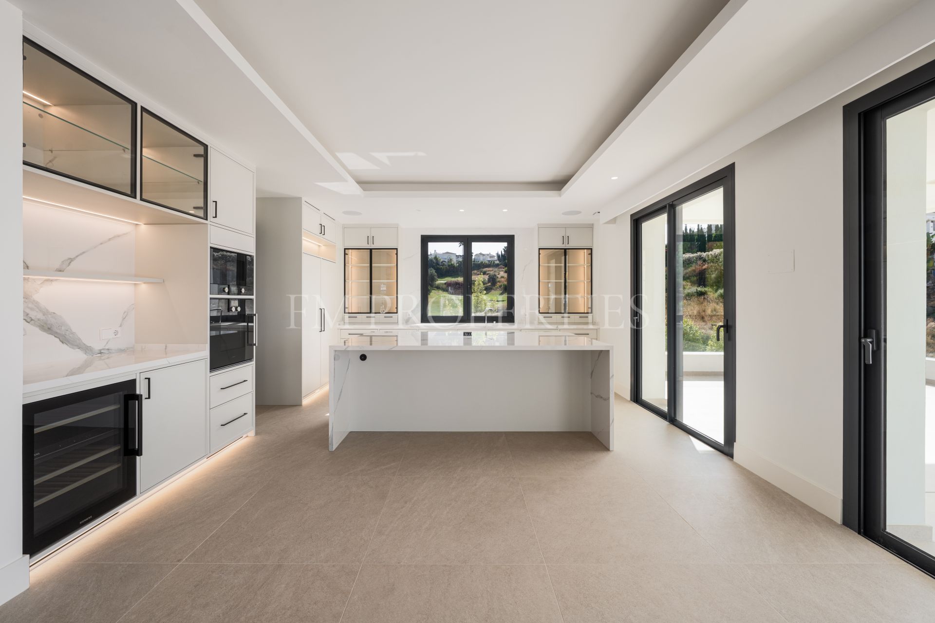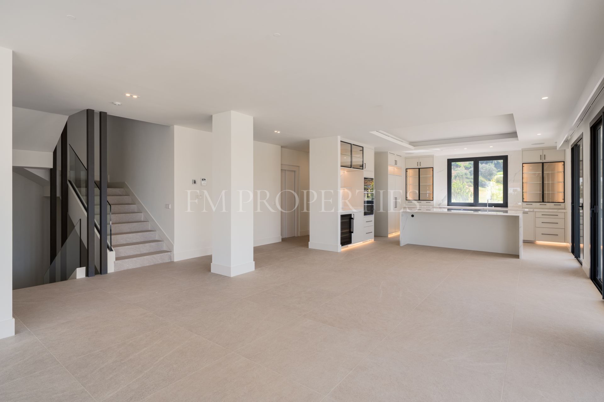 In the heart of La Resina Golf in Estepona rises an exclusive luxury villa in La Resina Golf, Estepona, an architectural masterpiece that blends contemporary elegance with the practicality of a home designed to enjoy life on the Costa del Sol to the fullest. Designed by renowned architect Francisco Martínez Galván, this residence invites you to imagine a lifestyle where views of the Mediterranean Sea and the golf course become part of everyday living.