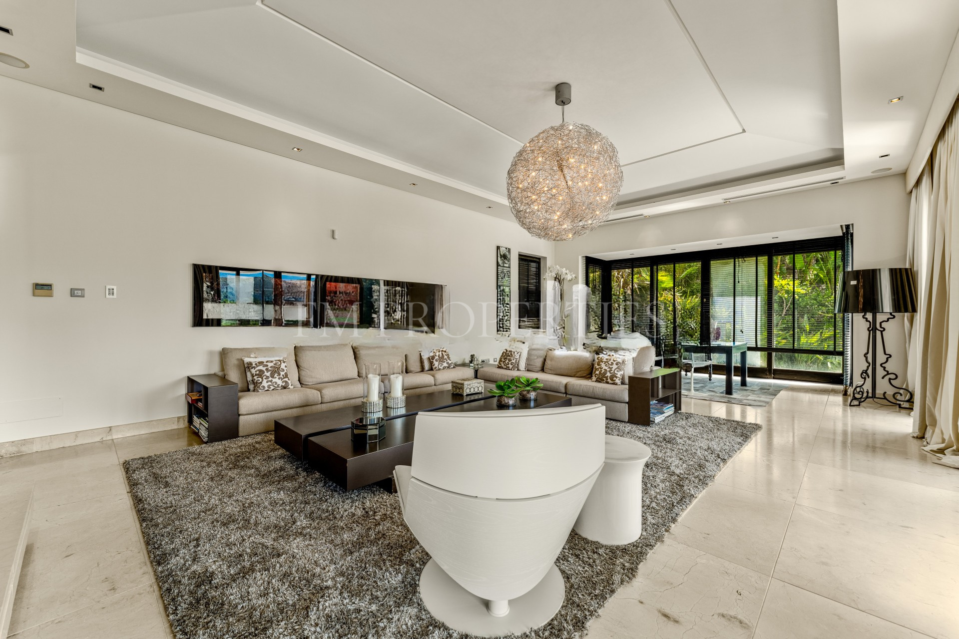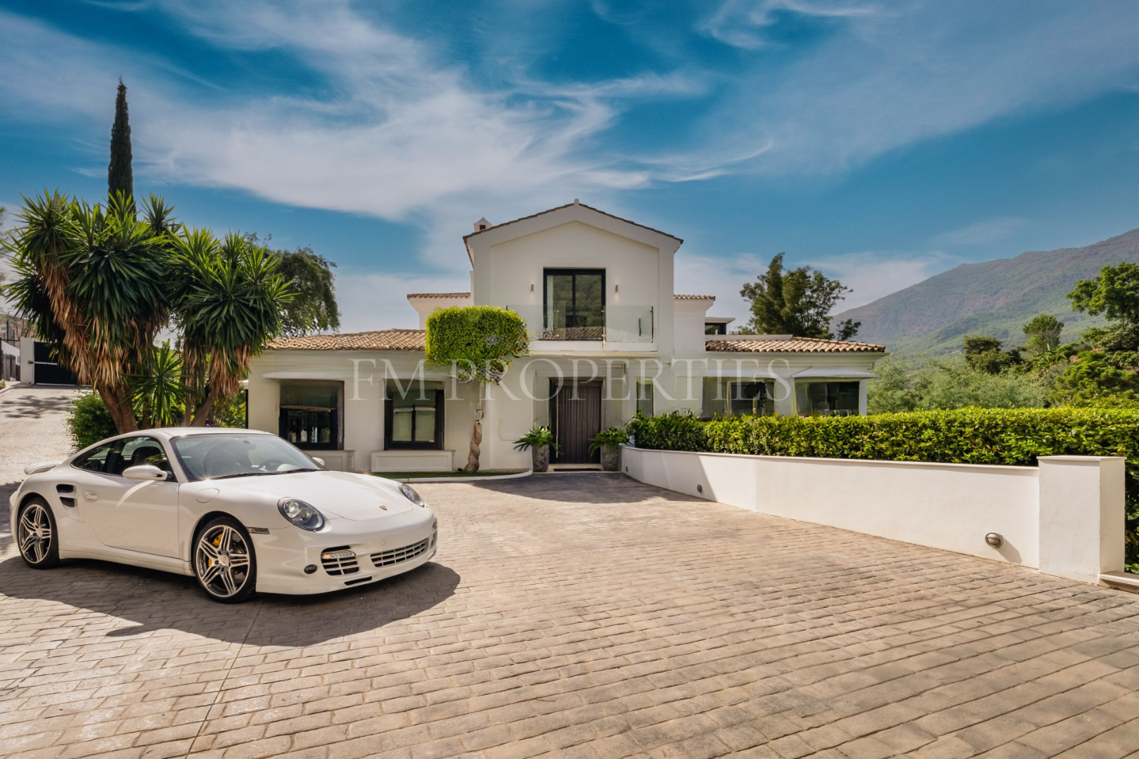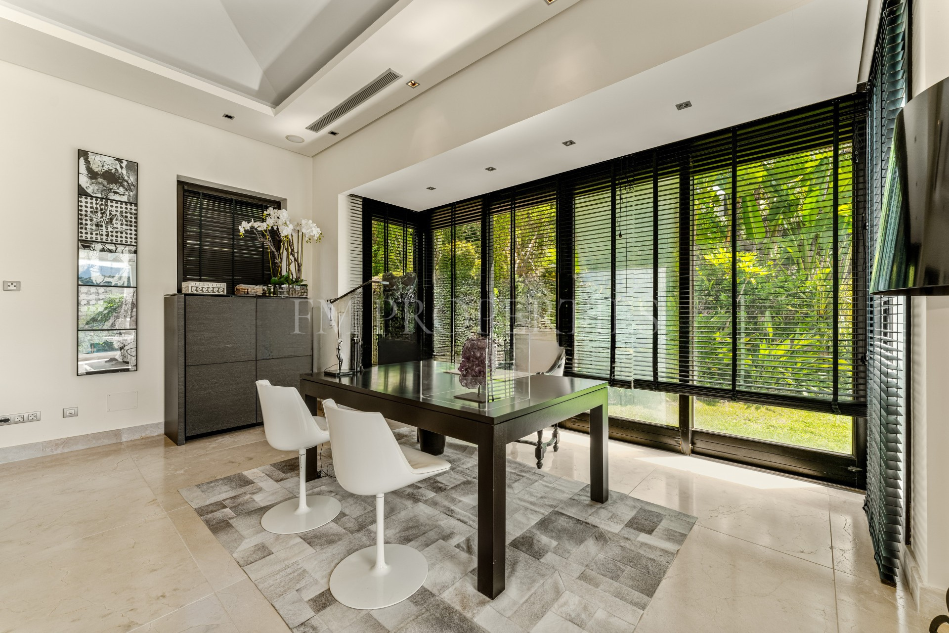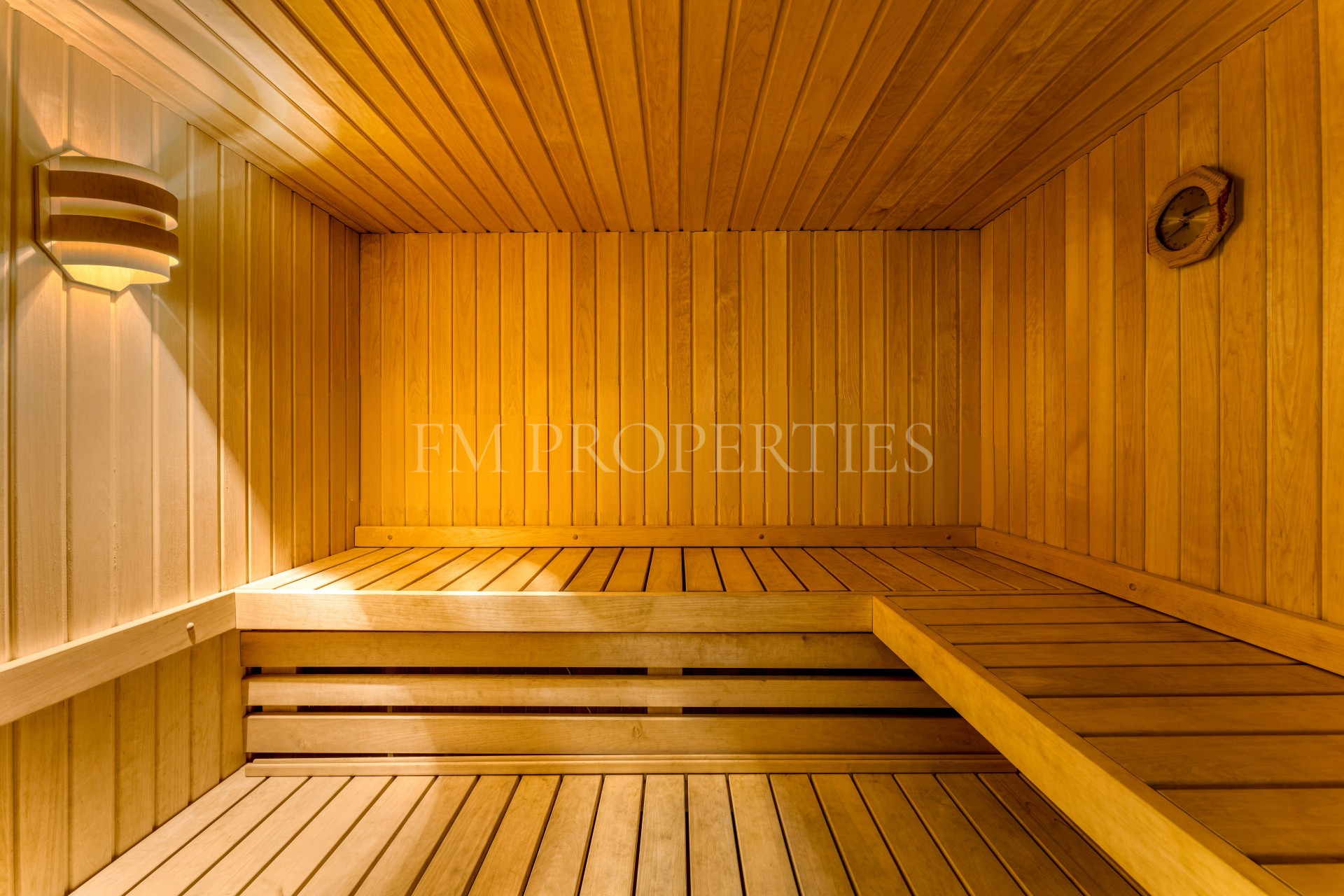 Every detail of this villa has been conceived to offer an unparalleled living experience: wine cellar, private cinema, gym, sauna, bar, staff apartment, and a garage for three cars. The exterior is equally remarkable, with mature landscaped gardens surrounding a stunning heated infinity pool, hardwood terraces, and charming corners to enjoy the Costa del Sol’s exceptional climate.