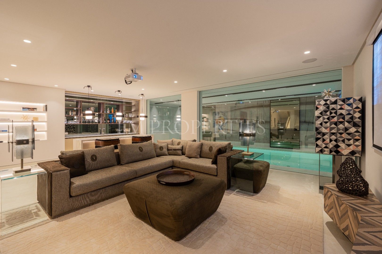 Throughout the home, exceptional amenities make this property stand out: an indoor spa with heated pool, a fully equipped gym, a Turkish bath, an entertainment room with bespoke bar, and a private garage for two cars. Outside, a beautifully landscaped Mediterranean garden surrounds the large infinity pool, while the expansive 467 m² of terraces allow you to enjoy Marbella’s climate all year long. The villa also features a rooftop solarium with outdoor kitchenette and panoramic sea views, perfect for unforgettable sunsets.