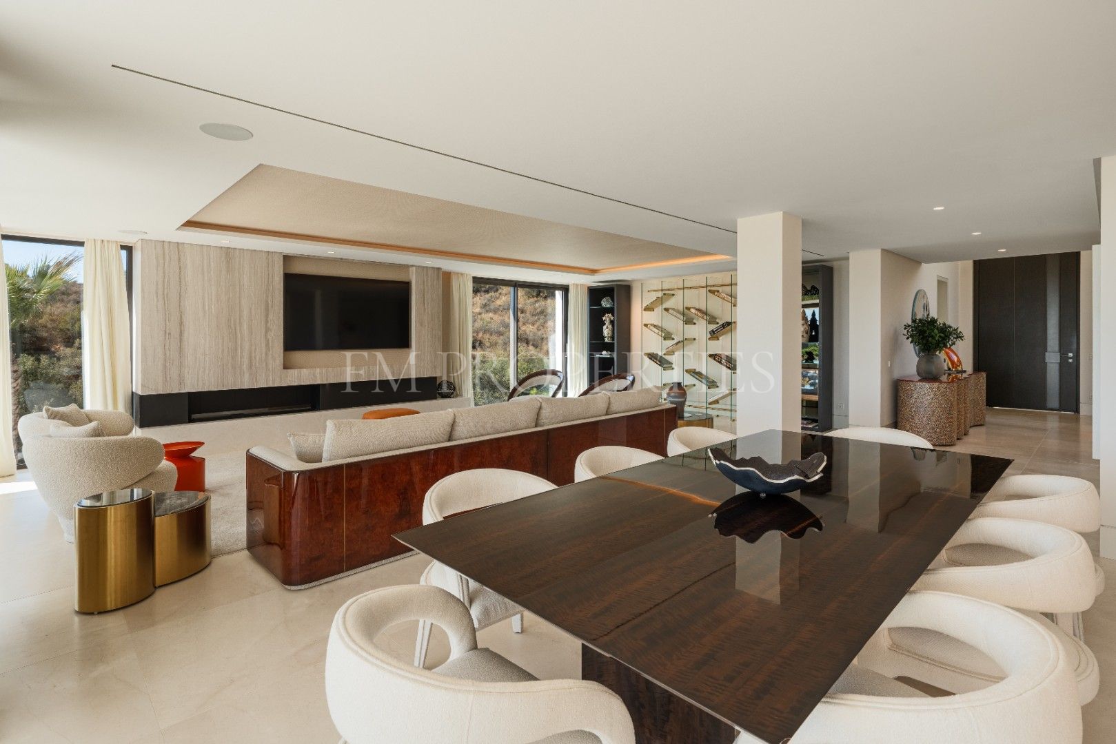 Set high above Marbella in the exclusive Marbella Hill Club, this spectacular modern villa in Marbella Hill Club invites you to imagine a life surrounded by light, privacy and endless Mediterranean views. Every room opens onto the surrounding nature, creating an atmosphere of absolute calm where design, architecture and landscape merge seamlessly. It is a home created to be enjoyed, to unwind in, and to experience the Golden Mile from a truly unique and sophisticated retreat.