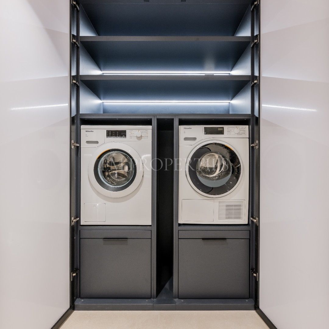 Features include an electric fireplace, Bang & Olufsen sound system, wine fridge, custom-made wardrobes, hidden laundry, and contemporary furnishings. The combination of quality finishes and modern interior design makes this property an attractive option for those seeking comfort and exclusivity.