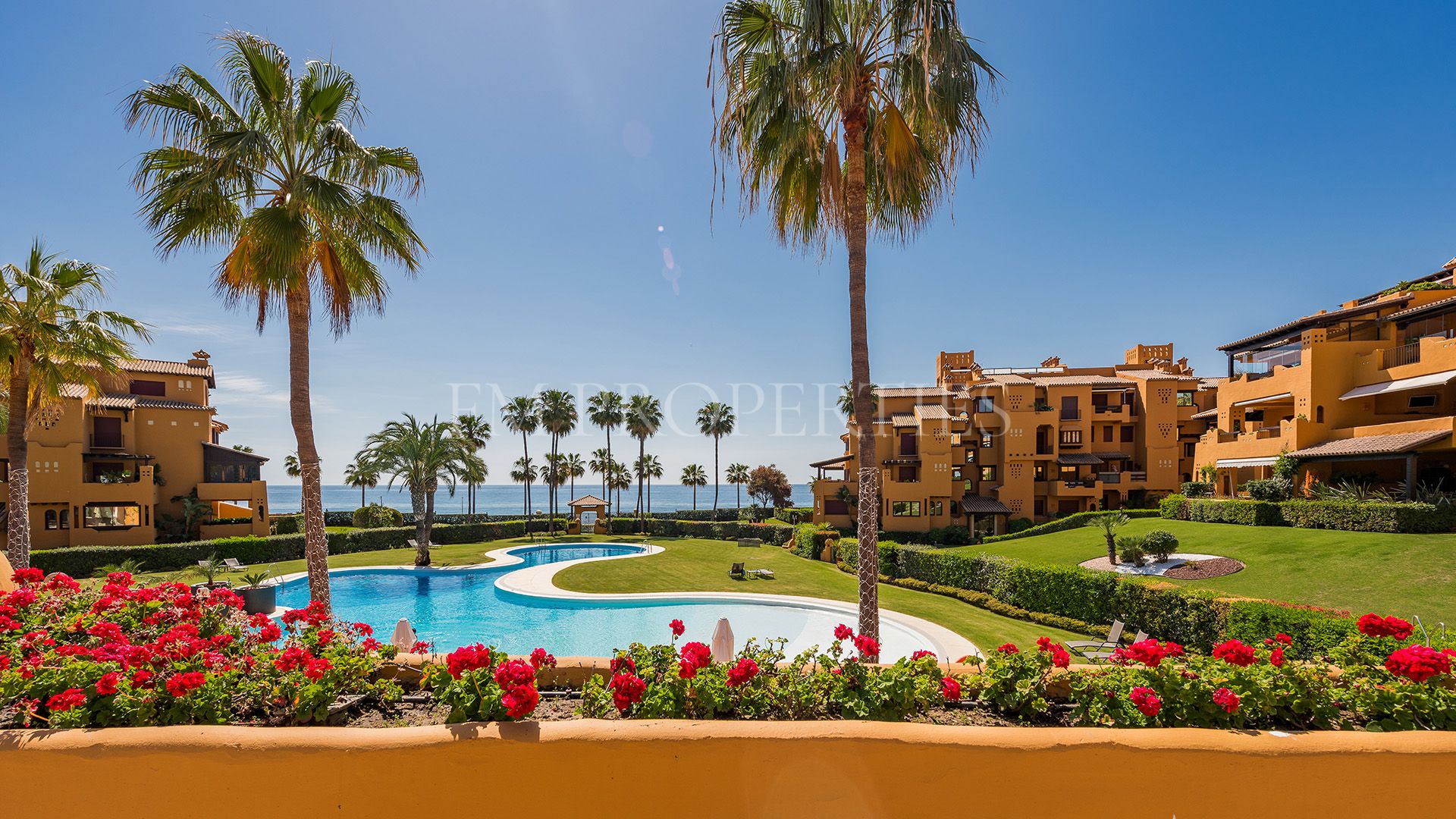 This luxury beachfront apartment in Los Monteros belongs to a gated development with 24-hour security, landscaped gardens, and a communal swimming pool. Its proximity to prestigious golf courses such as Río Real, as well as Marbella and Puerto Banús, reinforces its value as both a residence and an investment on the Costa del Sol.