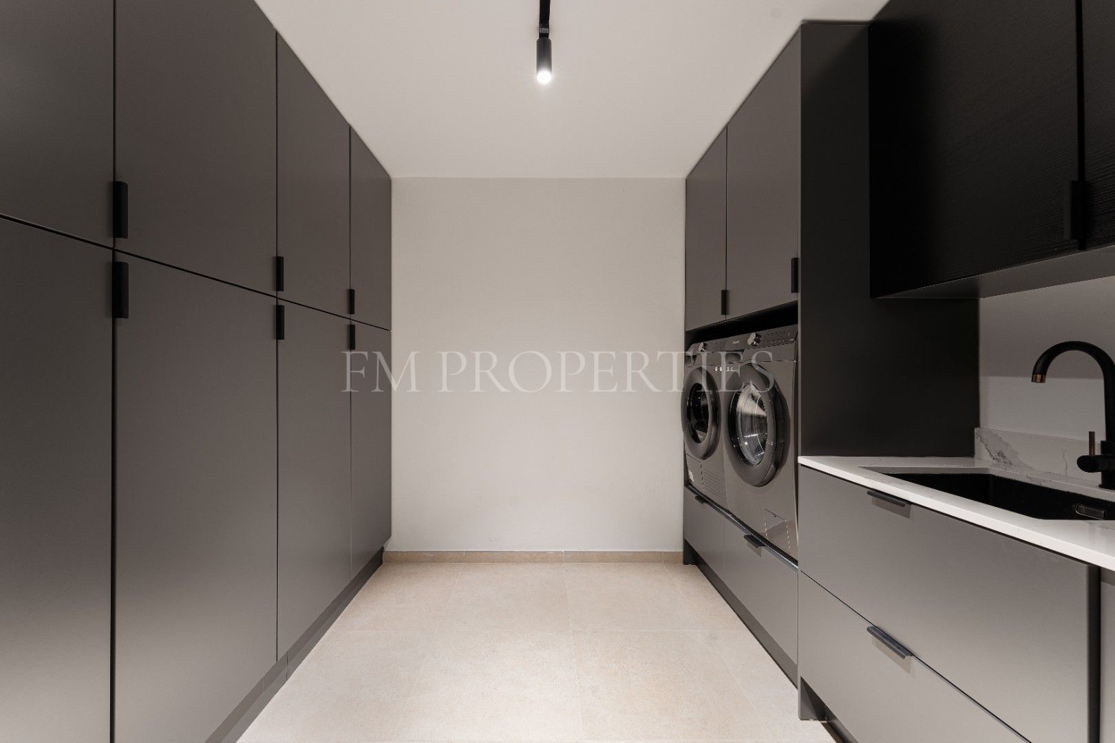 Spread over three levels, this 365 m² residence with 83 m² of terraces offers six spacious bedrooms and four bathrooms, all designed with a perfect balance between comfort and aesthetics. On the main floor, the spaces flow naturally: a Swedish-designed kitchen with real stone countertops and Gaggenau appliances opens to the dining and living areas, creating an ideal atmosphere for gatherings. From there, glass doors connect to the outdoors, where the private pool and lounge areas invite year-round enjoyment of the Mediterranean climate.