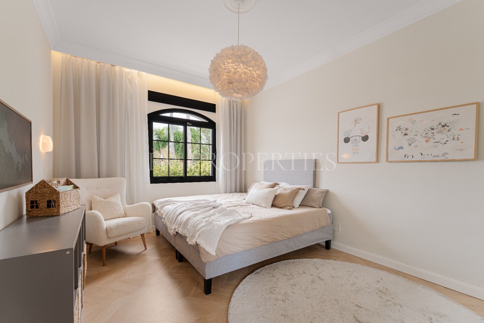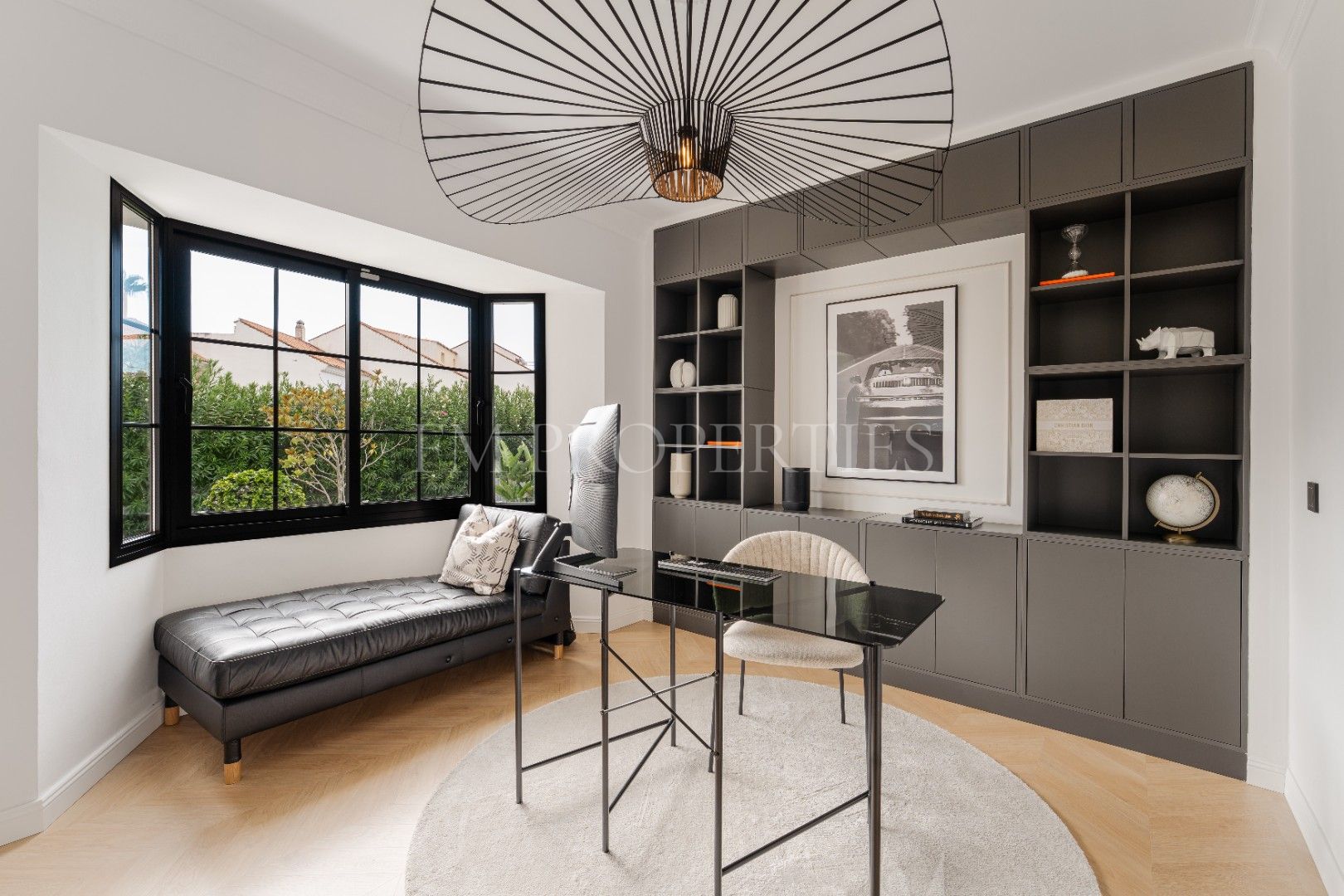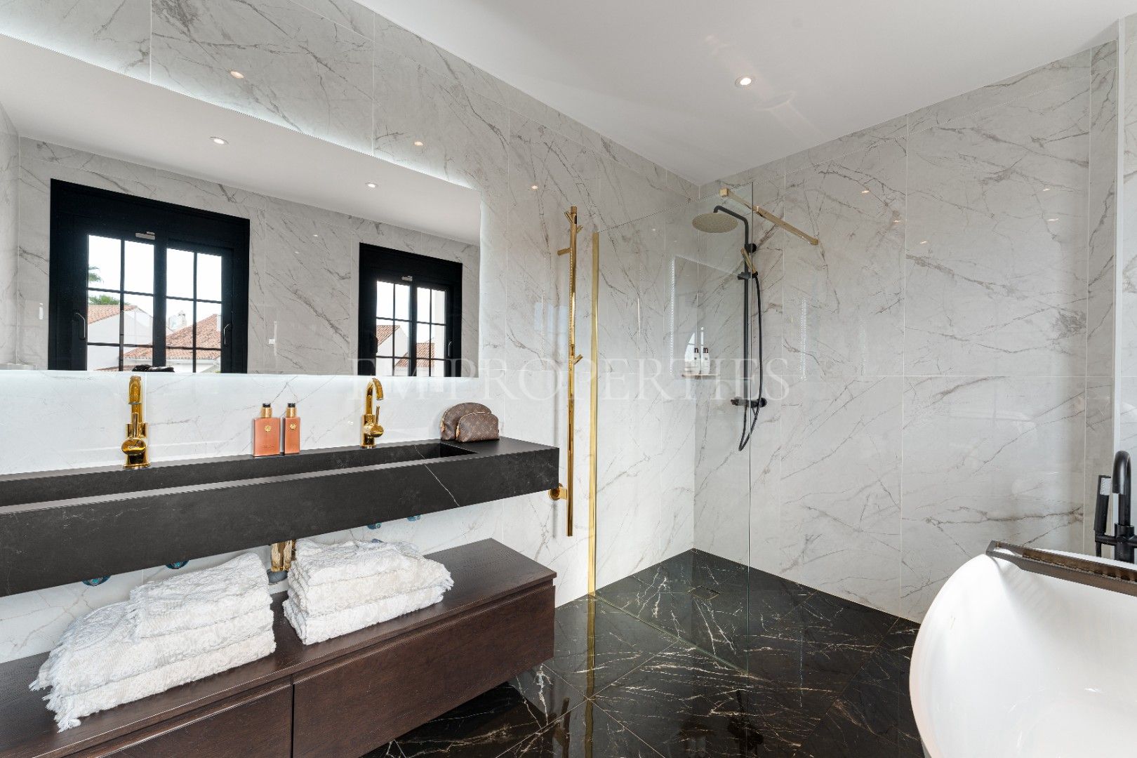 In the heart of the Costa del Sol, this elegant contemporary villa in Monte Biarritz, East Estepona, combines the charm of Scandinavian design with the sophistication of Mediterranean style. Imagine waking up to natural light streaming through large windows, enjoying breakfast on the terrace as the sun bathes the garden, and feeling the serenity of a home designed for wellbeing and beauty in every detail. Located just five minutes from the beach and surrounded by peace, Villa Montebello redefines the concept of a modern home.
