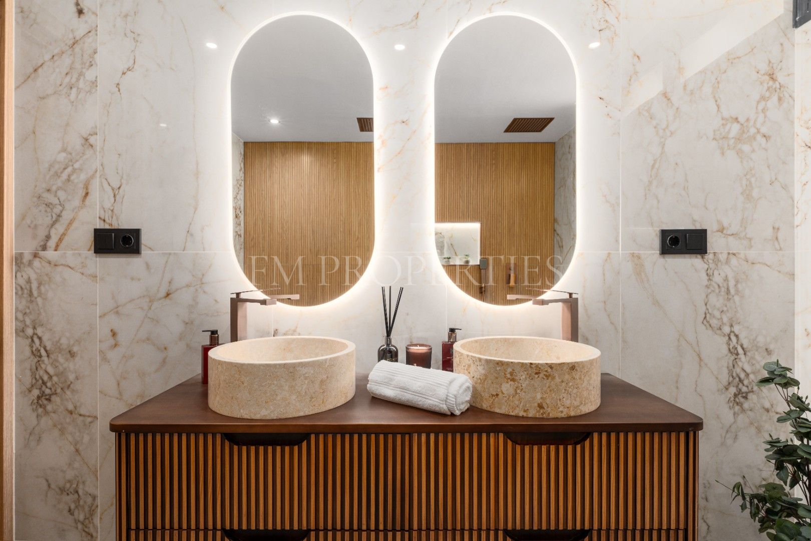 Penthouse La Arabesque offers a sophisticated take on contemporary living in the secure and stylish enclave of Atalaya de Río Verde, one of Nueva Andalucía’s most refined residential areas. This luxurious duplex penthouse for sale spans two spacious floors and presents a layout of three generous bedrooms and two sleek, modern bathrooms. With a built area of 172 square meters, it combines interior comfort with extensive outdoor living options, all designed to take full advantage of its privileged setting.