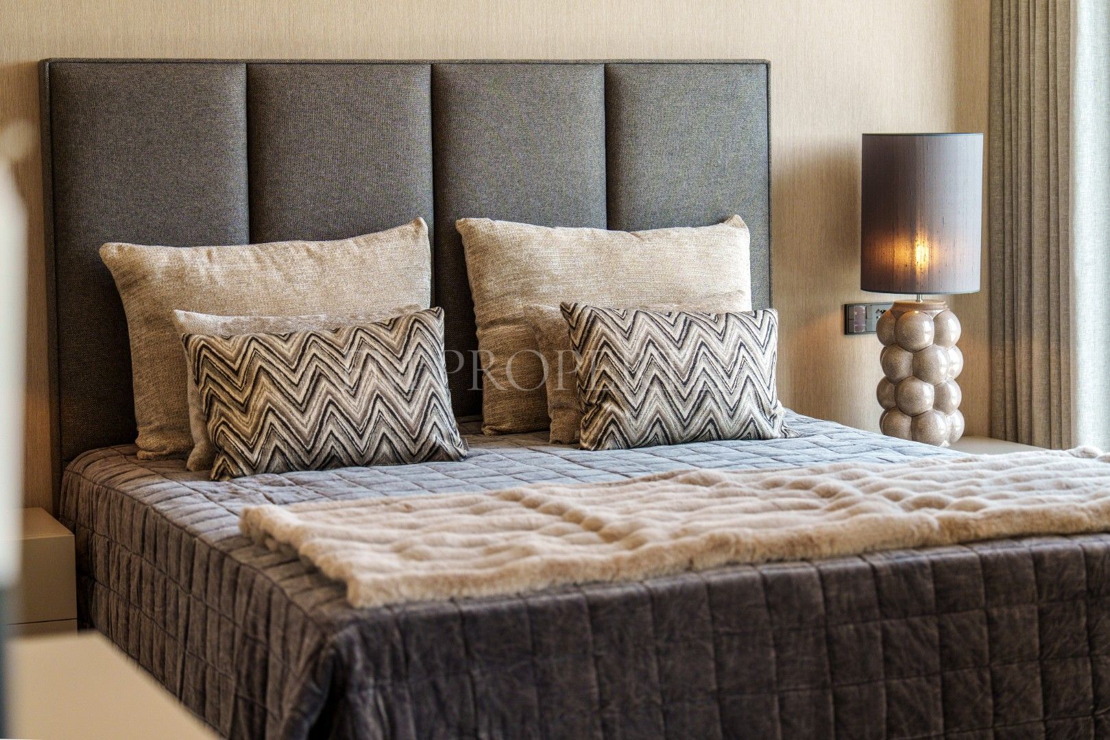 The lower level impresses with a sleek entertainment lounge featuring a bar, glass-fronted wine cellar and billiards table, complemented by two guest WCs and ample storage. Outdoors, more than 450 m² of terracing surround a large saltwater swimming pool, sun deck and landscaped gardens —the perfect setting to enjoy Marbella’s year-round sunshine.