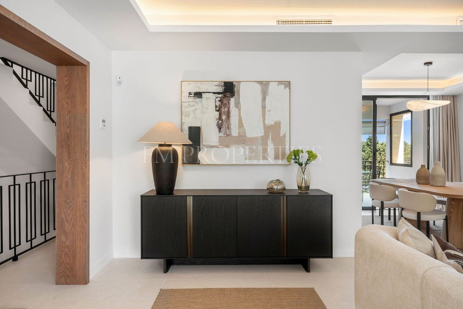 Casa Los Olivos es un adosado de tres plantas con un diseño exquisito, a la venta en la codiciada zona del Valle del Golf de Nueva Andalucía. Recientemente renovada, la propiedad combina el encanto mediterráneo con las líneas limpias y la funcionalidad de la vida moderna. Su arquitectura refleja las expectativas de estilo de vida de compradores exigentes que buscan calidad y ubicación.