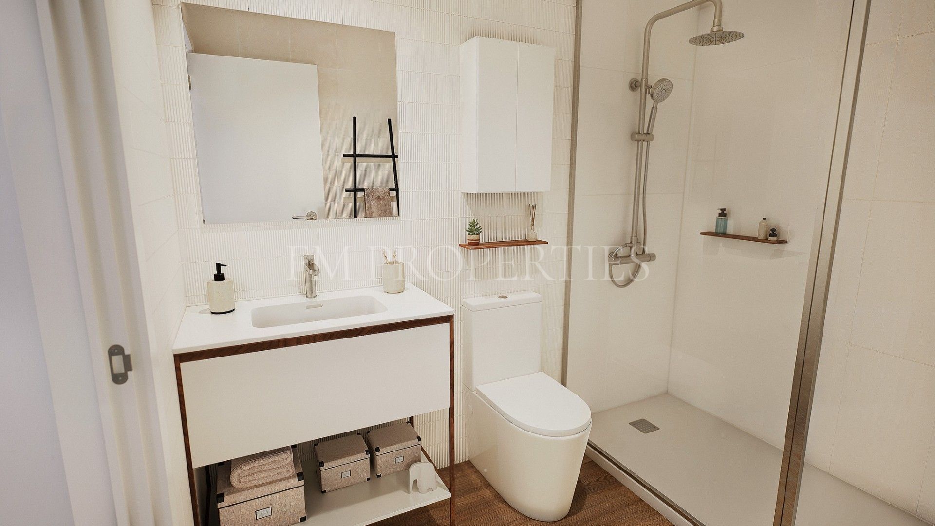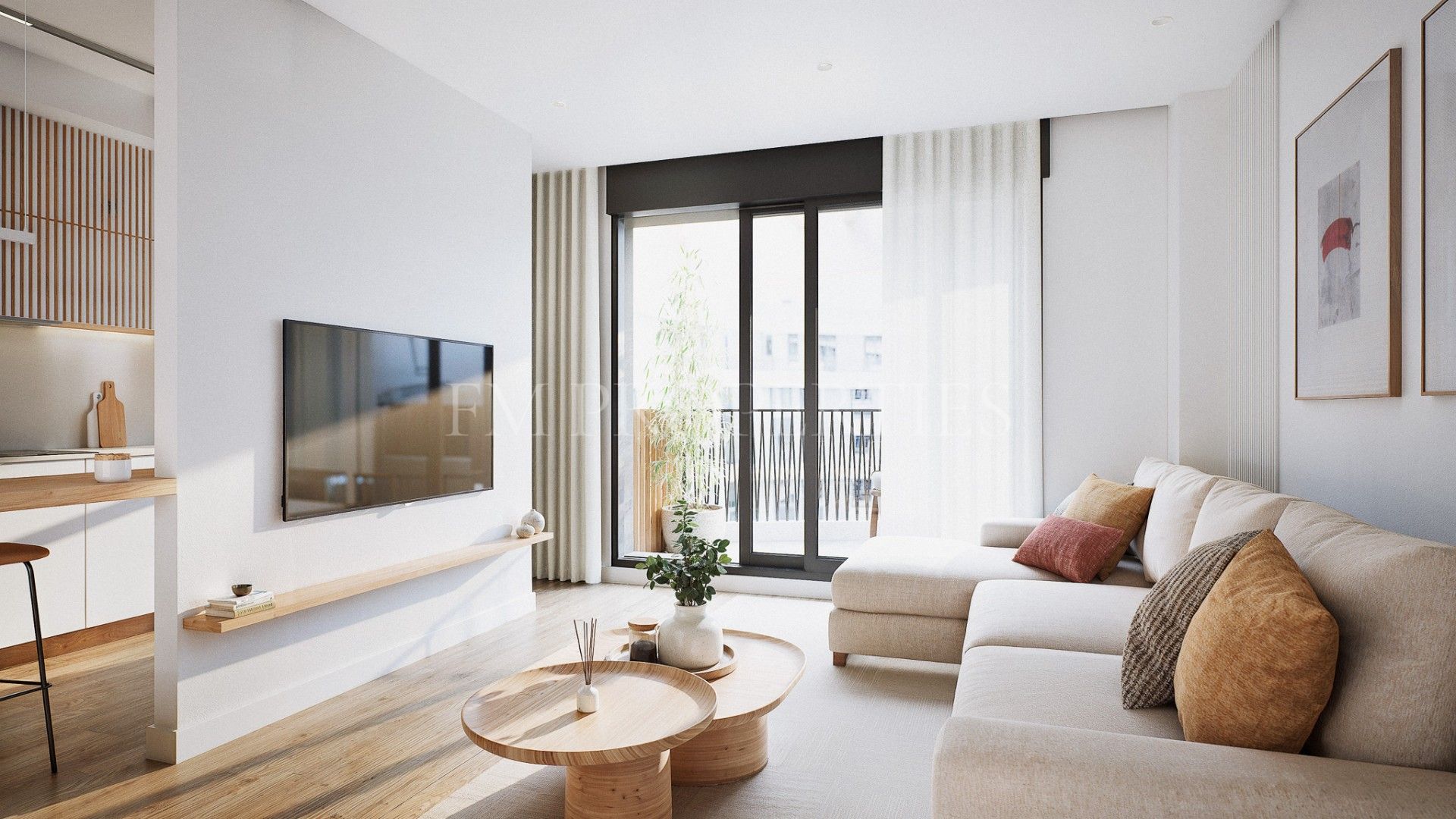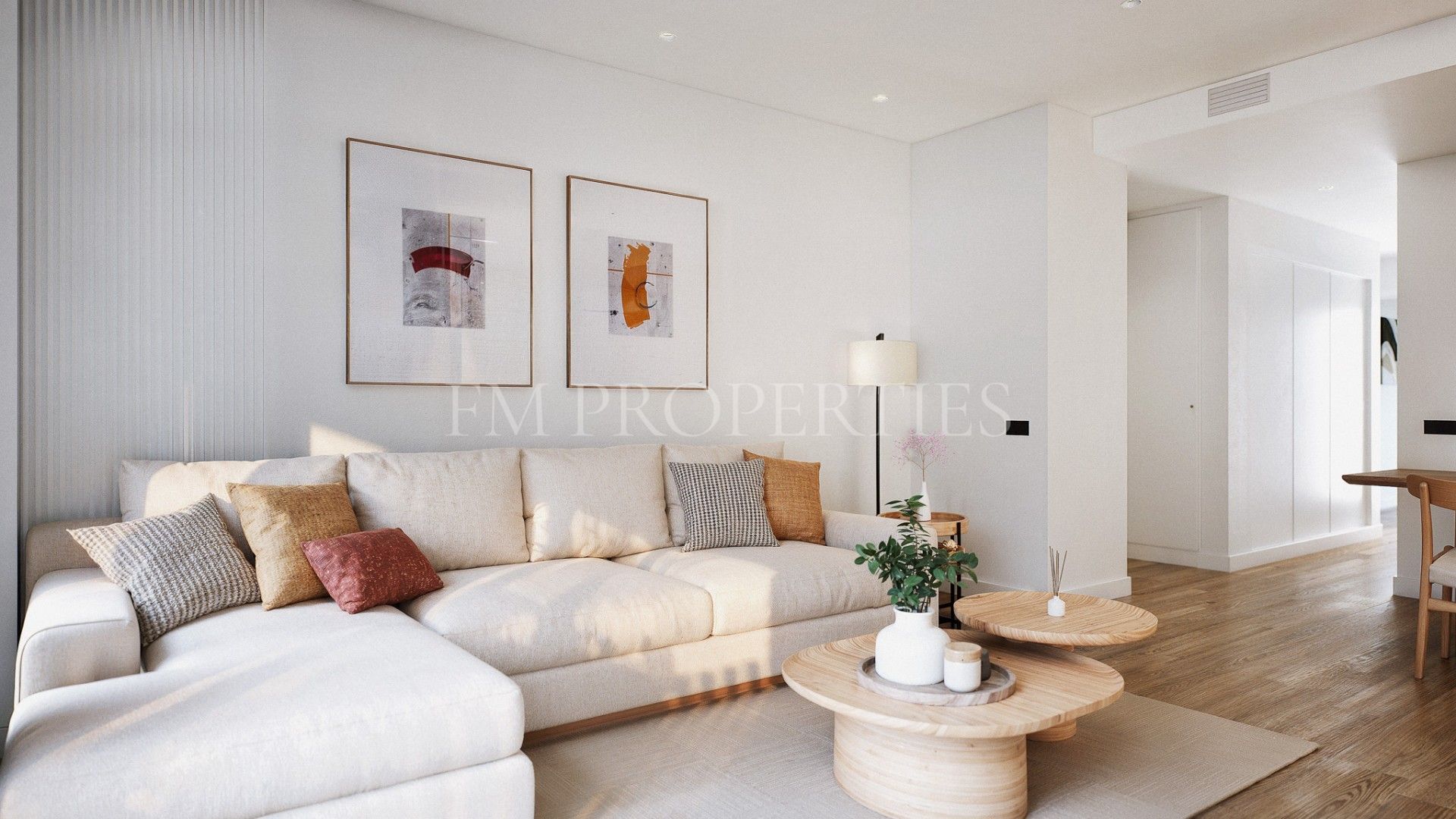 This modern apartment features an open, elegant design where natural light and space take center stage. With its bright interiors, large windows, and top-quality materials, it creates a seamless connection between indoor and outdoor living. The open-plan layout extends to a private terrace, perfect for relaxing or entertaining, while the finishes reflect a timeless and contemporary style. Every detail has been carefully planned to provide maximum comfort, energy efficiency, and wellbeing.