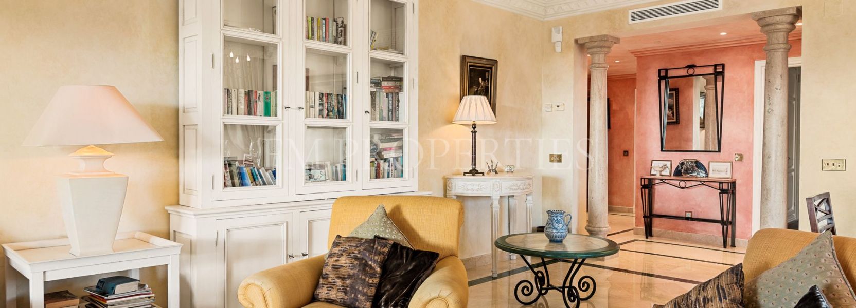 Este espléndido y bien cuidado apartamento tiene suelo de mármol crema incluyendo las terrazas, armarios empotrados, aire acondicionado frío y calor, calefacción por suelo radiante en todo el apartamento, doble acristalamiento con carpintería exterior de madera natural de Iroko y bañera de hidromasaje.