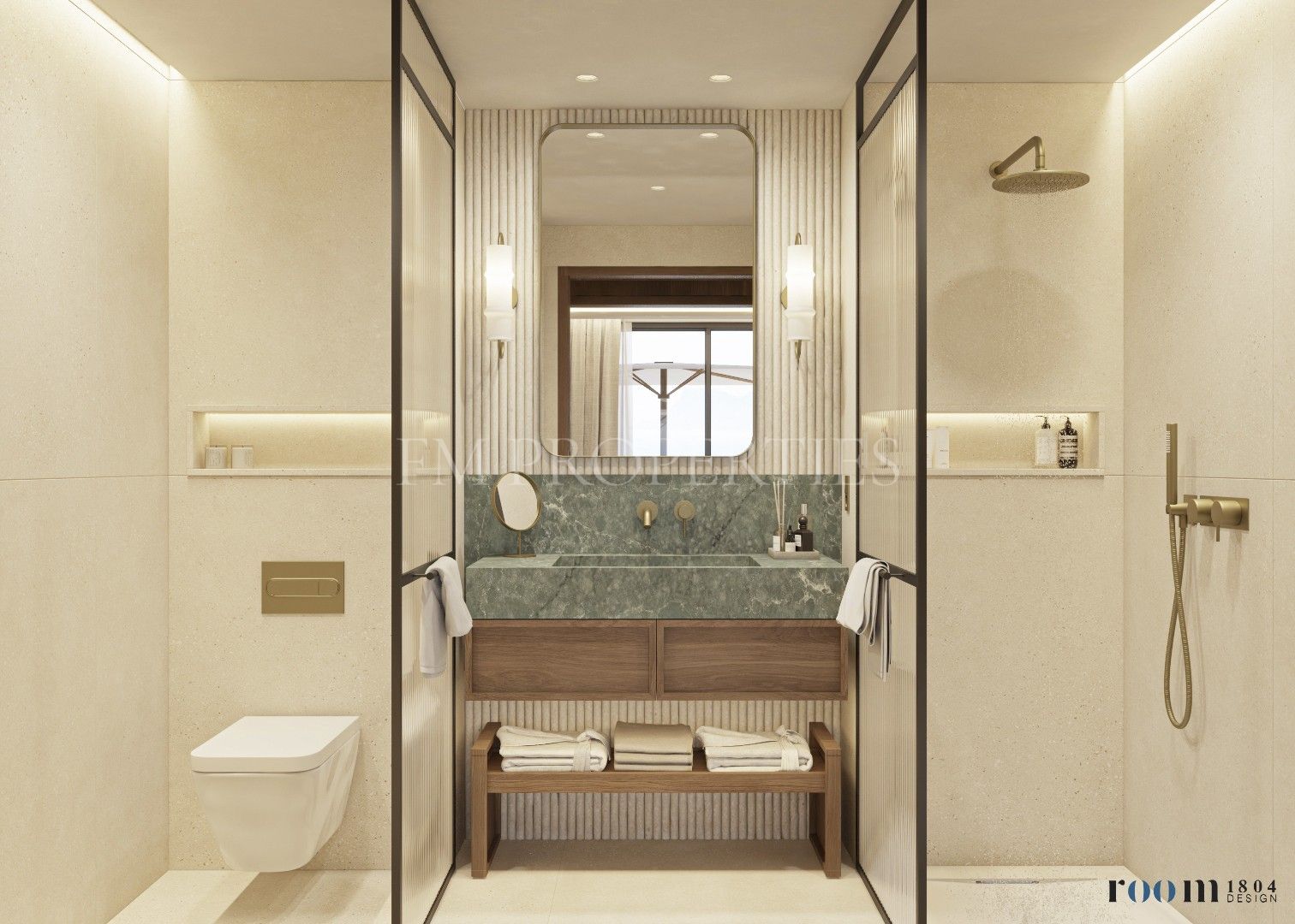 Cada detalle del Gran Ático en Azurean Marbella ha sido diseñado por el prestigioso estudio internacional de diseño hotelero Room1804. Las residencias combinan líneas modernas y materiales naturales cálidos, creando interiores contemporáneos y atemporales. Los grandes ventanales del suelo al techo enmarcan vistas que van desde el horizonte azul del Mediterráneo hasta las verdes laderas de la montaña. Las amplias terrazas, jardines privados y solariums amplían el espacio habitable al aire libre, reflejando la esencia del estilo de vida de la Costa del Sol.