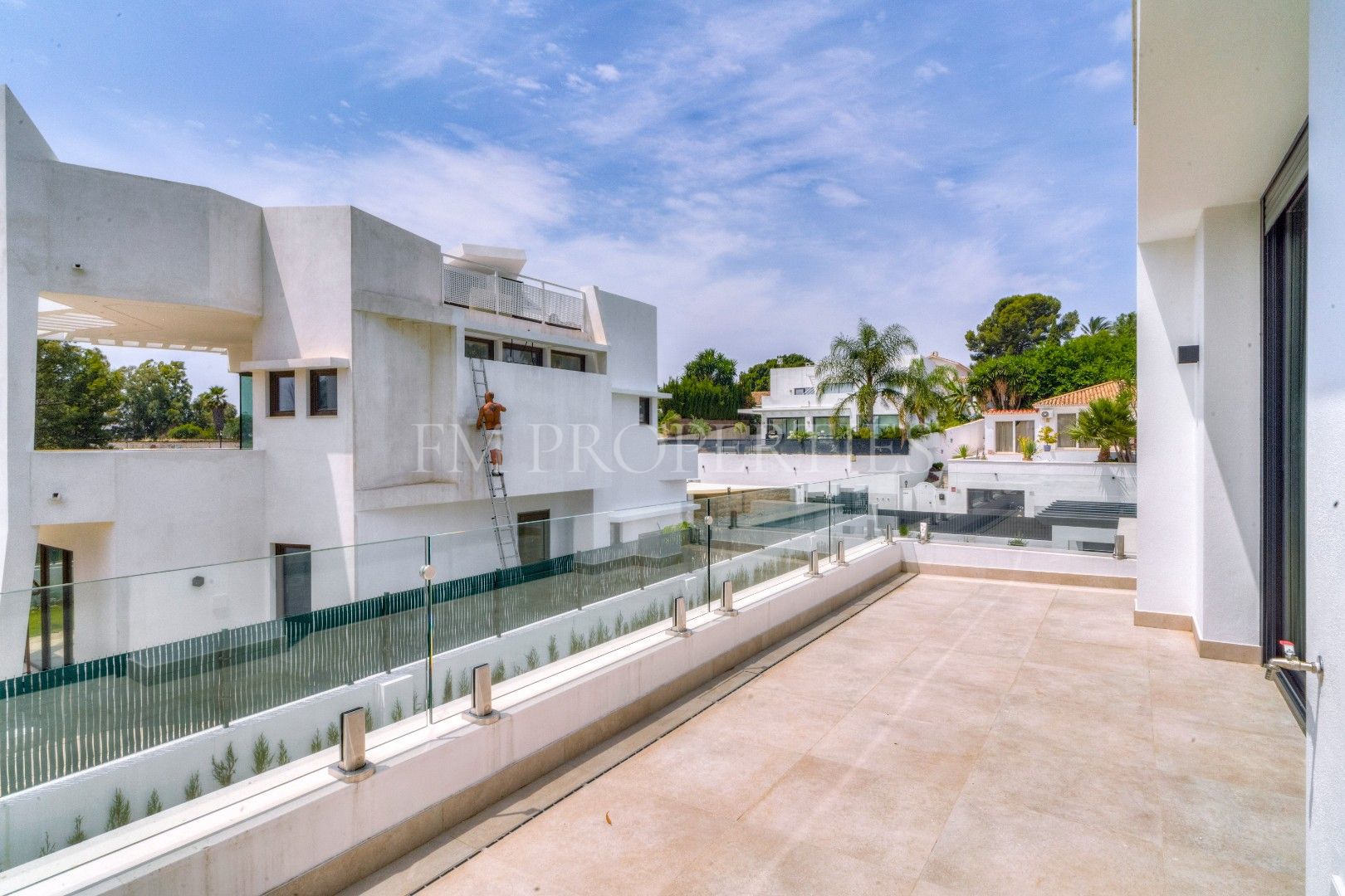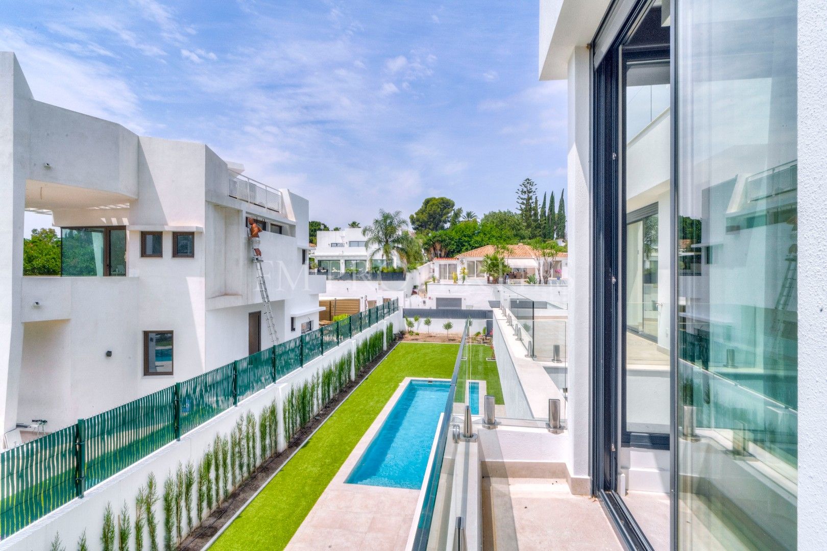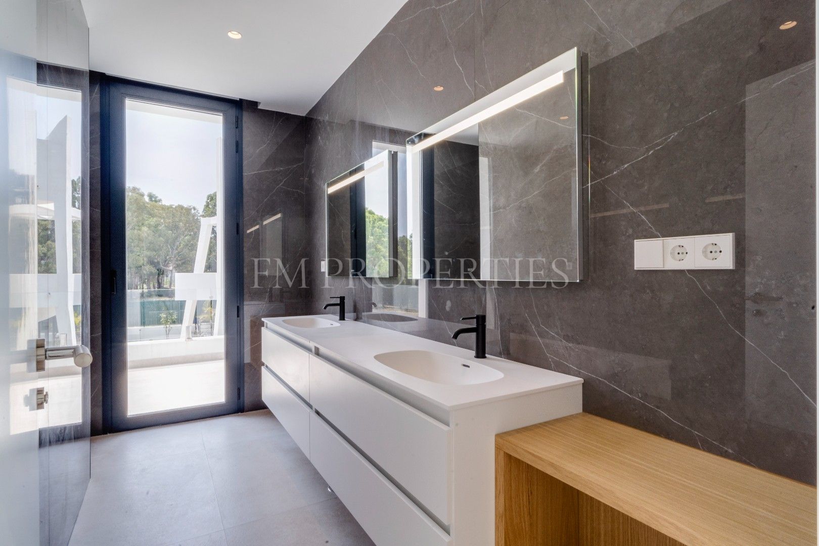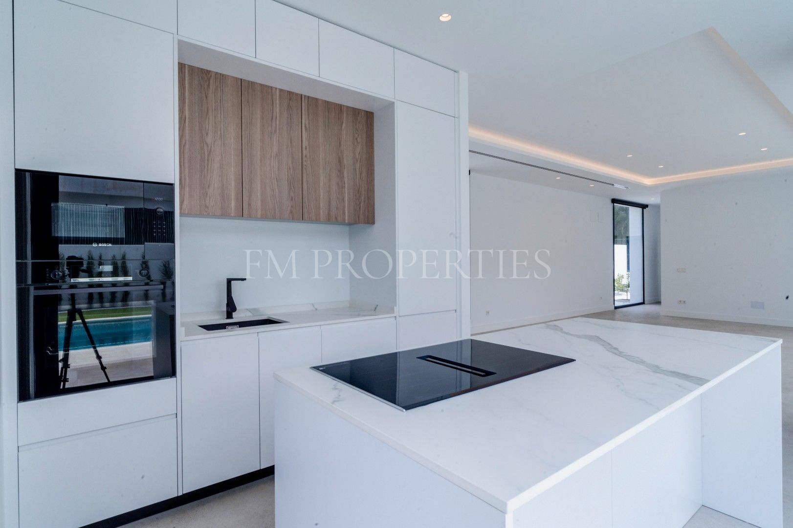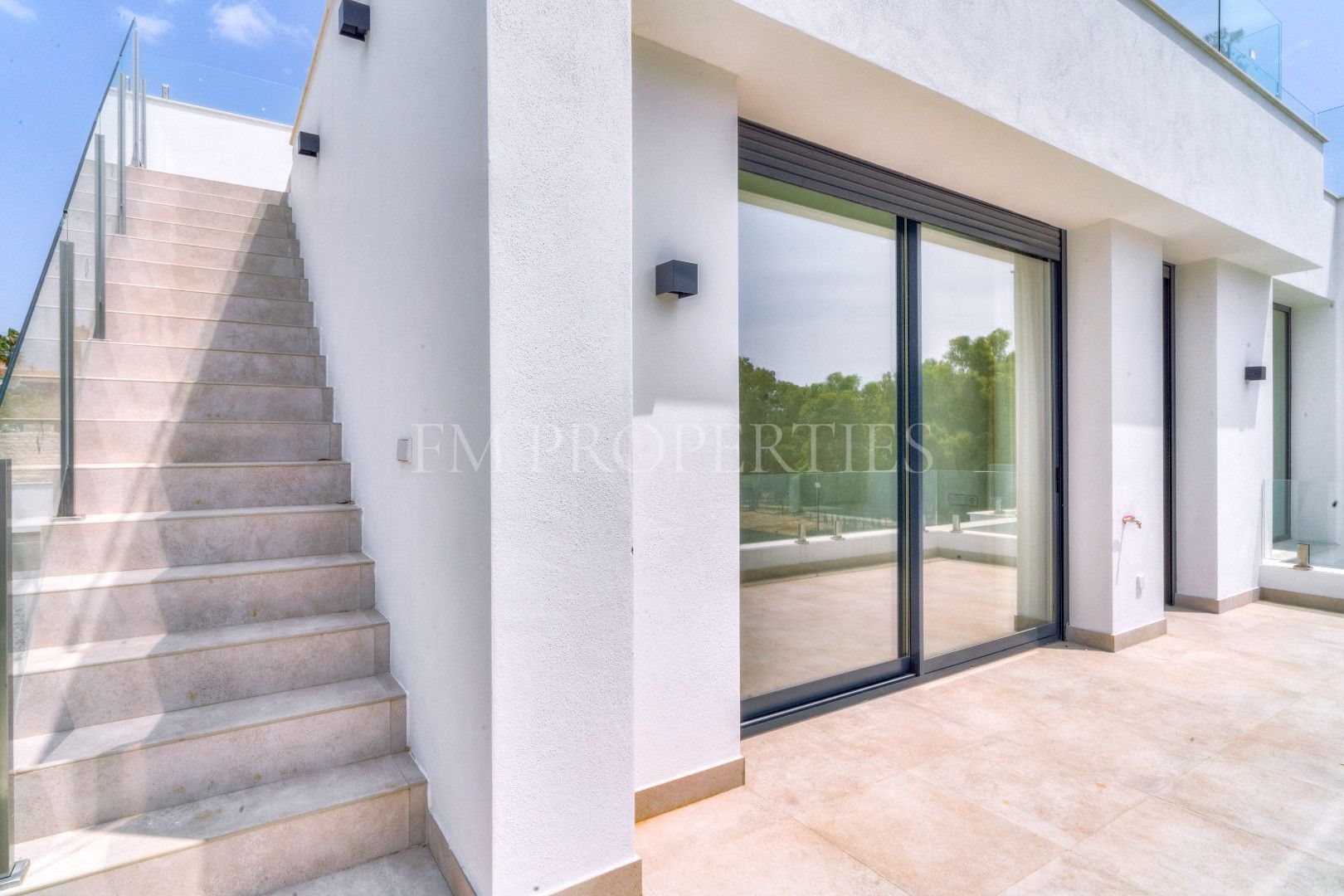 El exterior de Villa Flores está concebido como una extensión natural de la vivienda, con espacios ajardinados que se integran en el entorno protegido, además de una piscina privada ideal para disfrutar del clima soleado de la Costa del Sol durante todo el año. Un amplio garaje completa la funcionalidad de la propiedad.