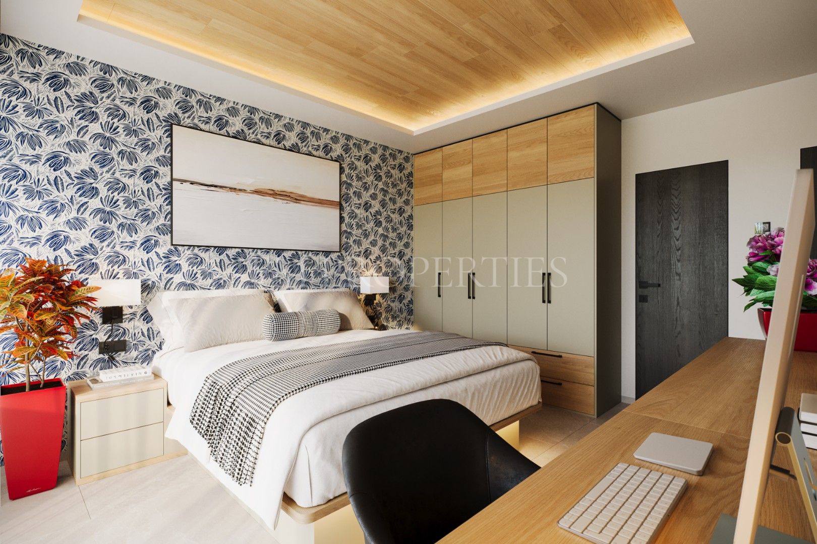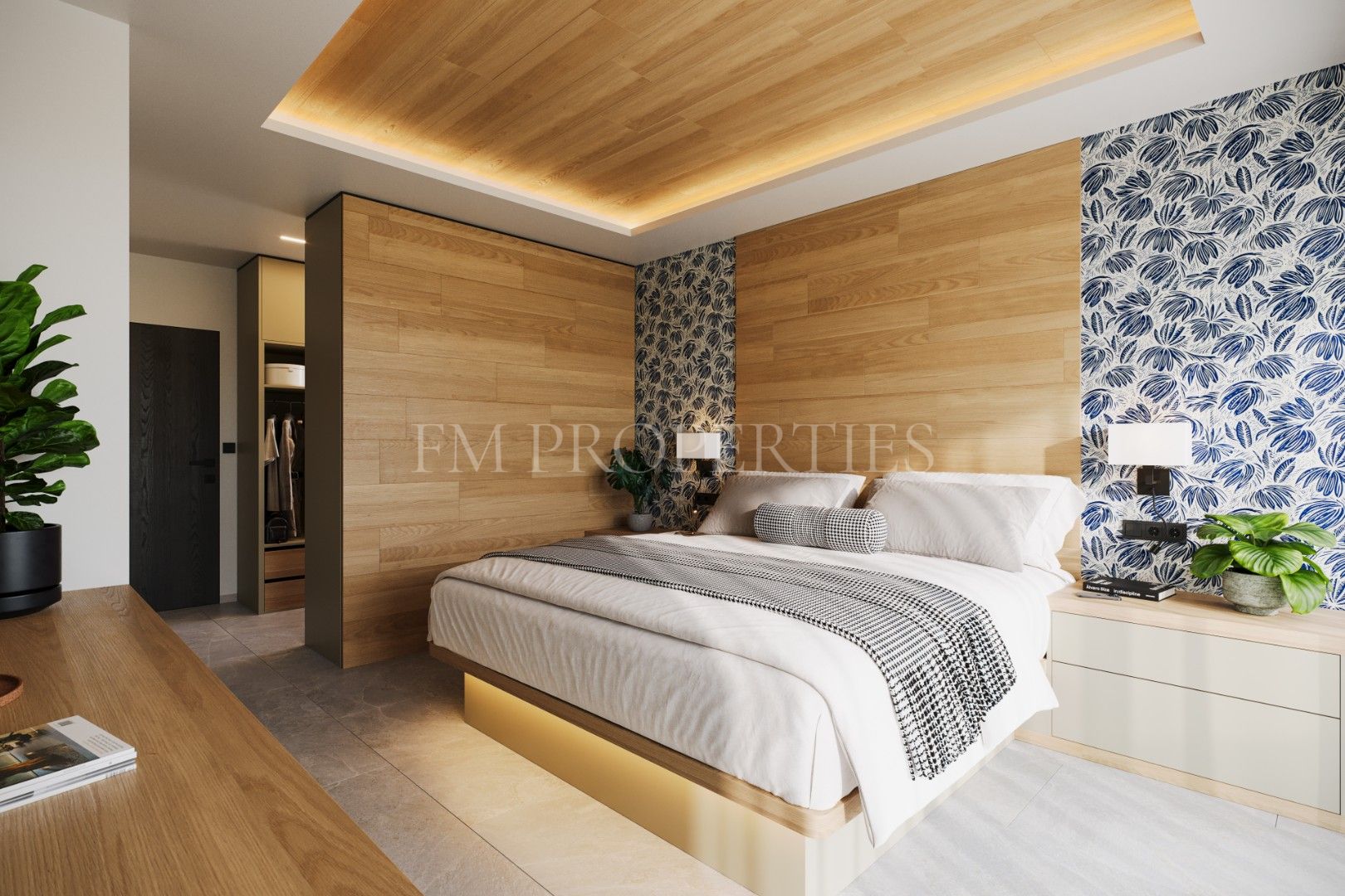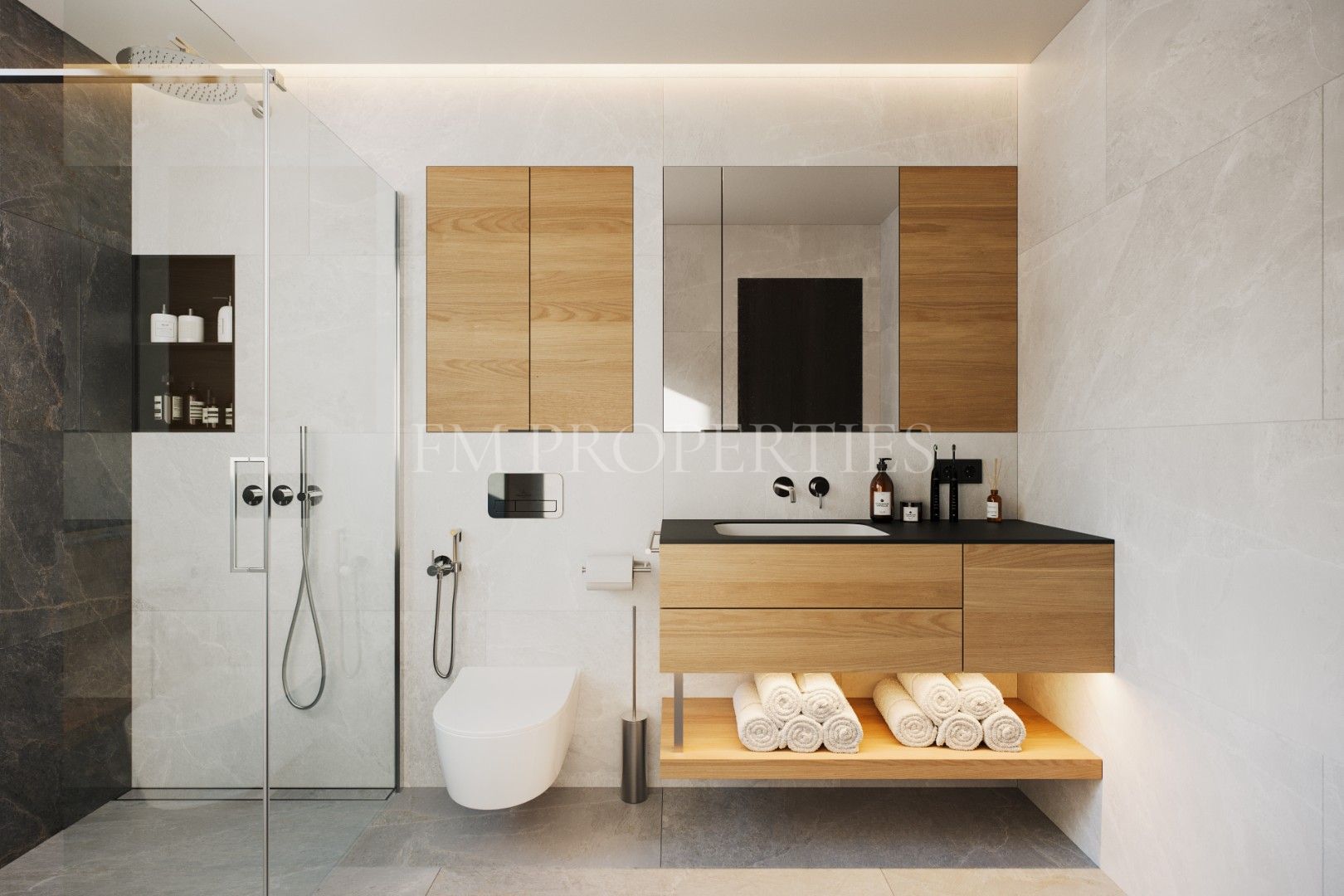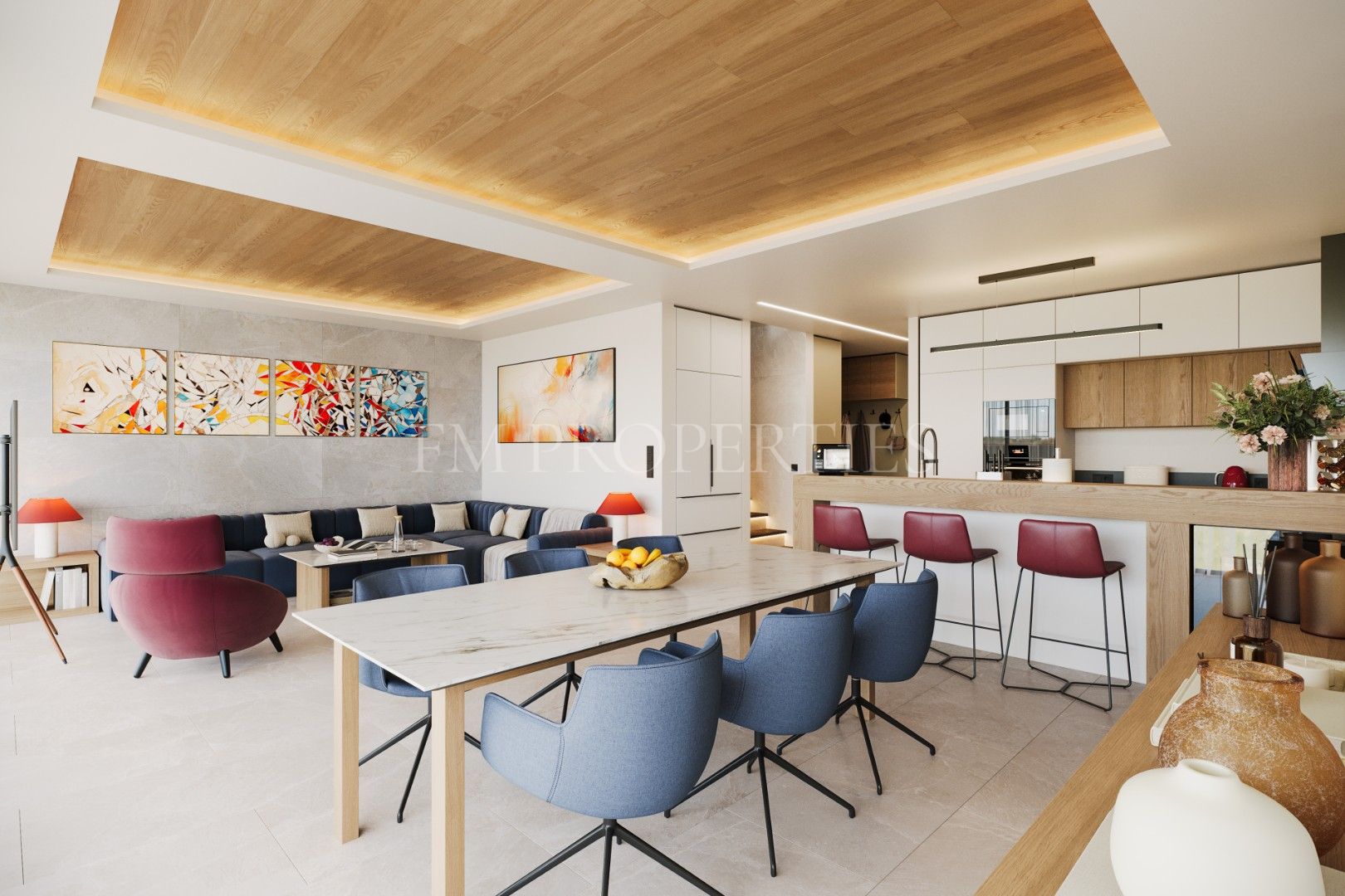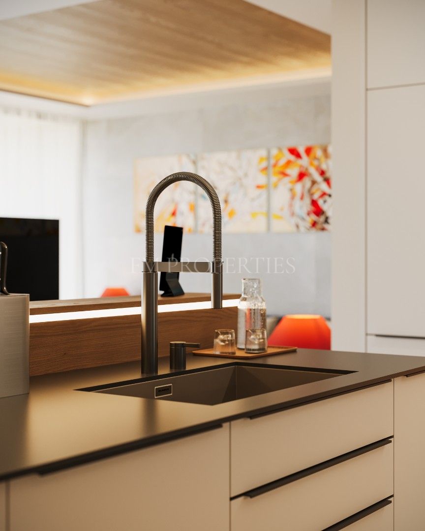 Cada detalle de la villa ha sido cuidadosamente diseñado para equilibrar el estilo moderno con la elegancia atemporal. La planta baja le da la bienvenida con un luminoso vestíbulo que fluye hacia una amplia zona de estar y comedor de concepto abierto, conectada a la perfección con una cocina de última generación equipada con electrodomésticos premium AEG y una vinoteca Liebherr.