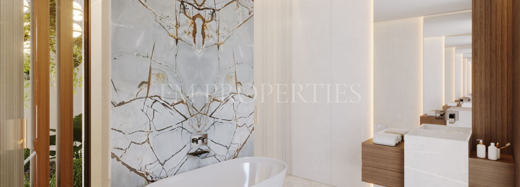 Villa à vendre à La Carolina, Marbella Golden Mile avec 5 Chambres, 5 Salles de bain, 5 salles de bain en-suite, 2 toilets et a piscine (privé), garage (privé) et garden (privé). Dimensions: 652m² construit, 1022m² Parcelle et 353m² terrasse.