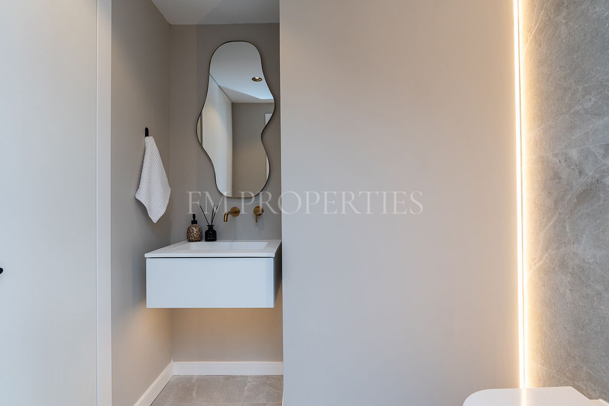 MIRADOR 5 a été entièrement rénové et décoré avec des finitions haut de gamme. Il dispose d’un vaste espace de vie ouvert comprenant un coin télévision, une salle à manger formelle et une cuisine entièrement équipée avec panneaux en chêne et îlot, le tout ouvrant sur la généreuse terrasse avec vue sur le golf, son lac, la montagne de La Concha et la mer. La lumineuse suite parentale bénéficie d’une vue sur la mer et d’un accès direct à la terrasse. Deux chambres d’amis avec salles de bain en suite et un WC invités avec buanderie fermée complètent la propriété. Les matériaux et finitions sont de haute qualité, allant de la cuisine design équipée d’appareils haut de gamme aux sols et à la décoration. Autres caractéristiques : climatisation centrale chaud/froid, chauffage au sol dans les salles de bain, barbecue et réfrigérateur sur la terrasse, interphone électrique et carport.