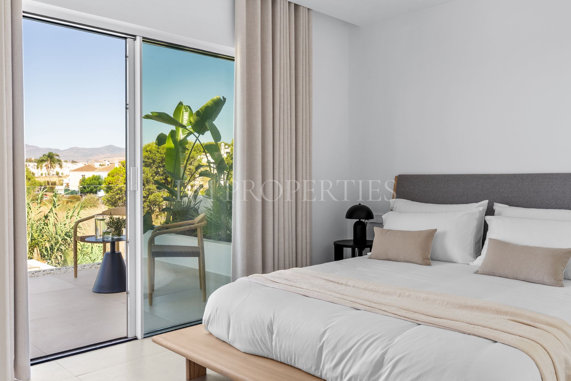 Les finitions en noir mat et les touches dorées ajoutent sophistication et modernité à chaque pièce. Le jardin paysager et la piscine privée invitent à profiter du climat de la Costa del Sol toute l’année, transformant chaque espace en havre de paix.