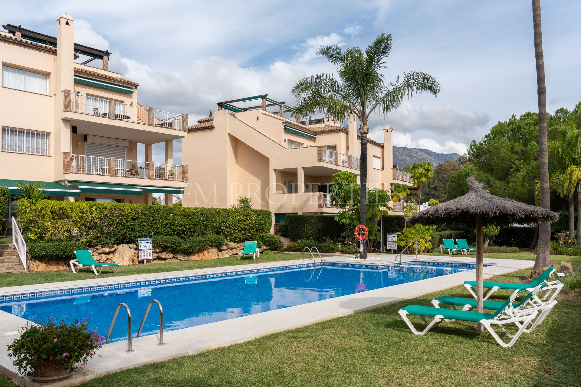 Sortez sur la grande terrasse couverte, une extension parfaite de la salle de séjour où vous pourrez dîner en plein air ou vous détendre en toute intimité. L’appartement est situé dans des jardins communautaires magnifiquement entretenus, offrant une oasis de tranquillité. Les résidents ont également accès à un court de tennis et une piscine, offrant un ensemble complet de commodités récréatives. La propriété est idéalement située à proximité de terrains de golf de classe mondiale et à seulement quelques minutes en voiture de Puerto Banús, Marbella et San Pedro, offrant ainsi un accès facile aux restaurants de luxe, boutiques et plages.