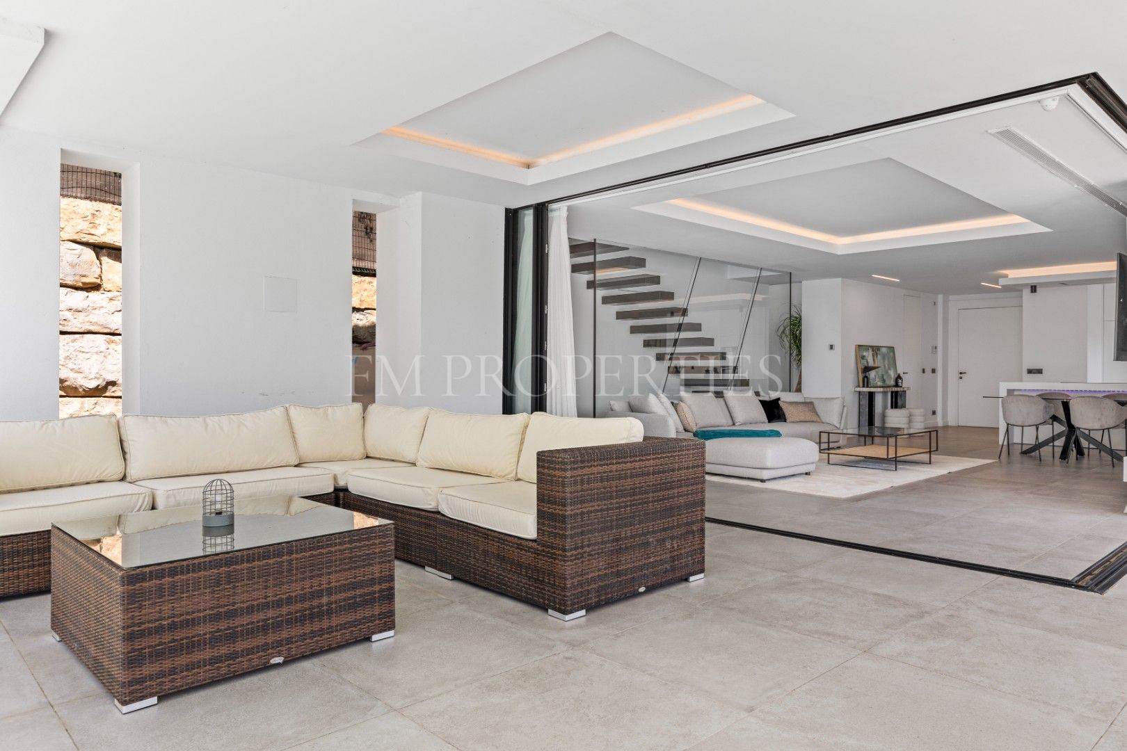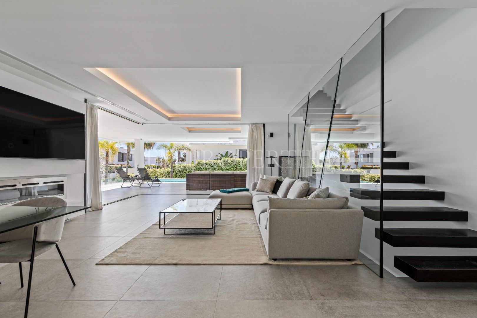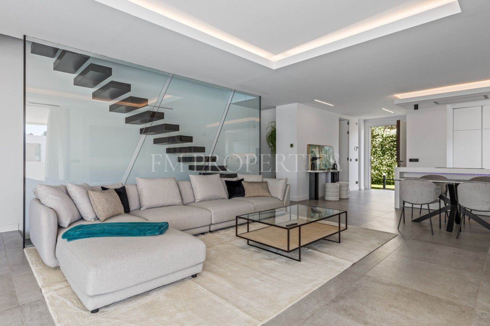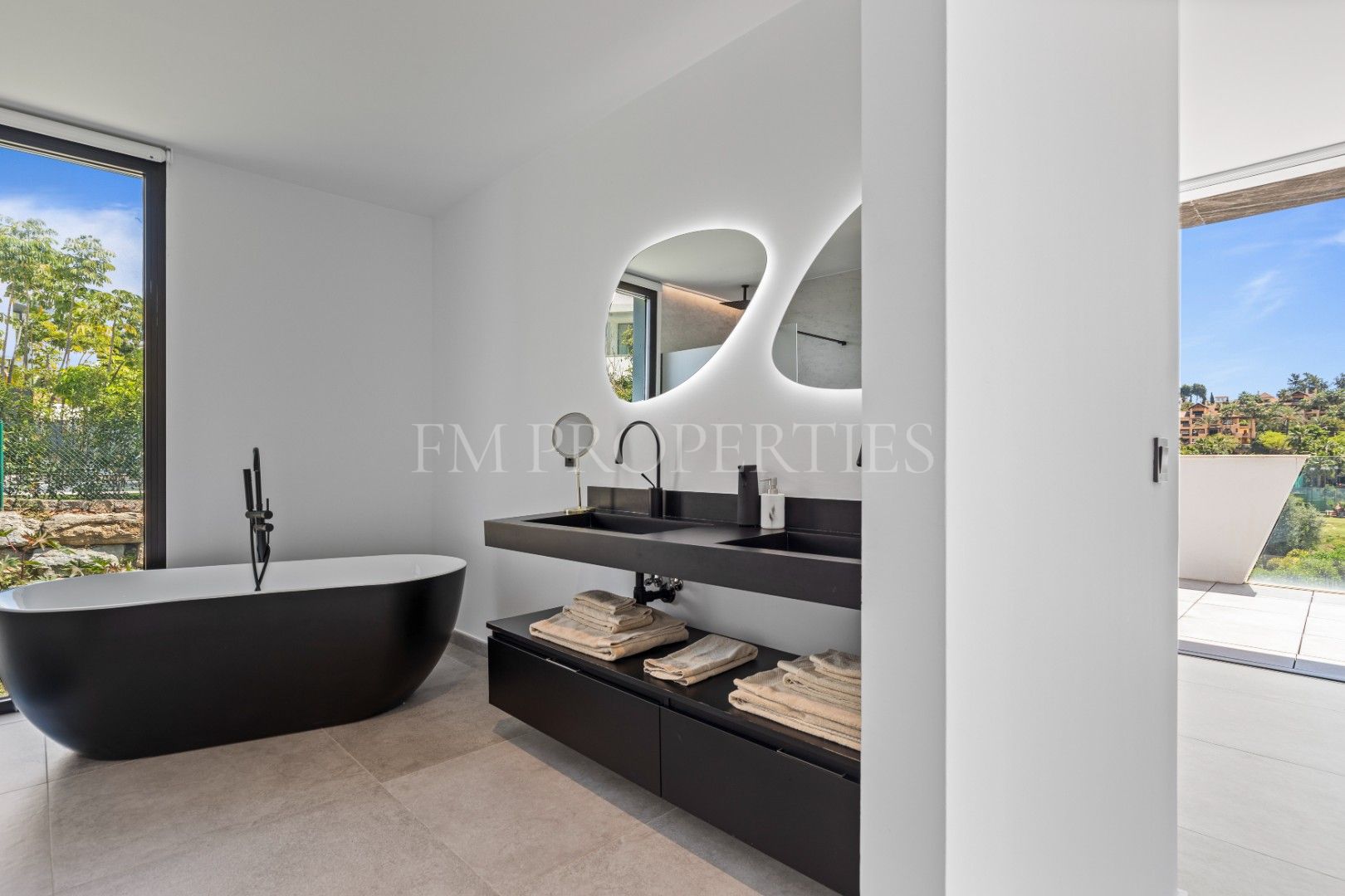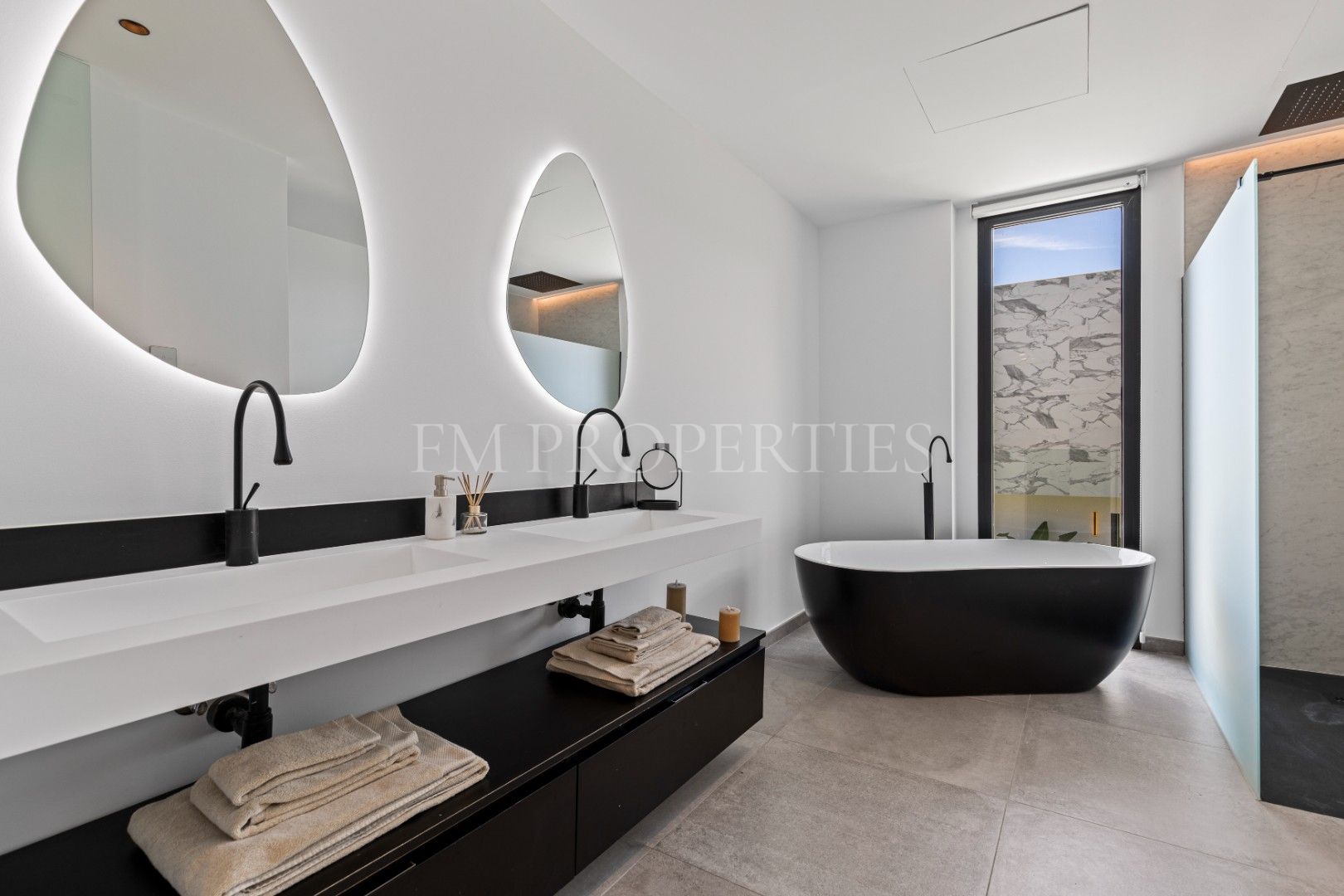 Andere bijzondere kenmerken zijn onder meer een zwevende trap geïntegreerd in de constructie van de woning, een domoticasysteem voor verlichting, klimaat en beveiliging, centraal airconditioningsysteem met individuele regeling per kamer (warm/koud), zonnepanelen voor extra energie-efficiëntie, en een CCTV- en video-intercomsysteem. Deze villa is een ideale kans voor wie op zoek is naar een hoogwaardige moderne woning met veel ruimte, privacy en een uitstekende prijs-kwaliteitverhouding in een van de meest gewilde gebieden van Marbella.