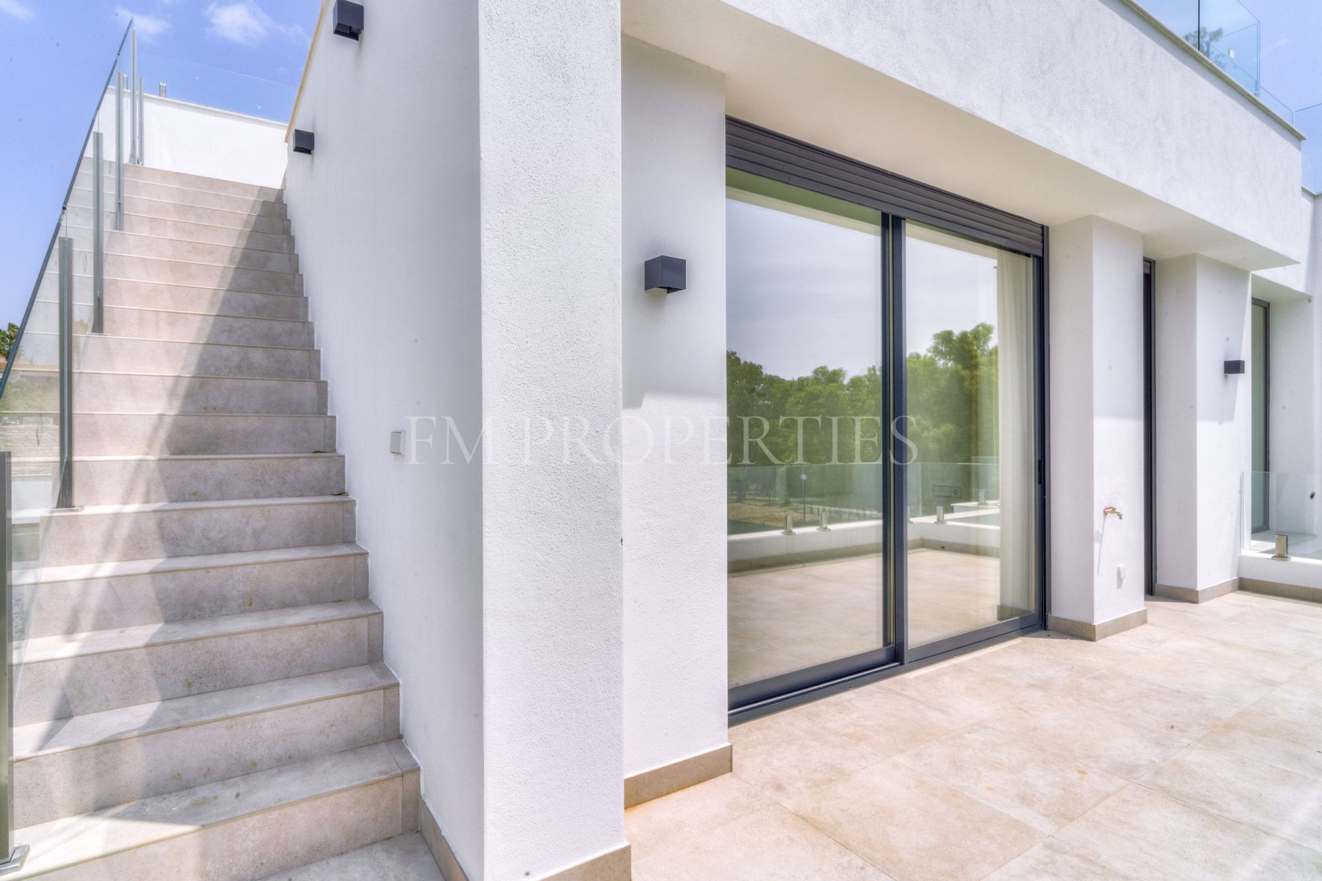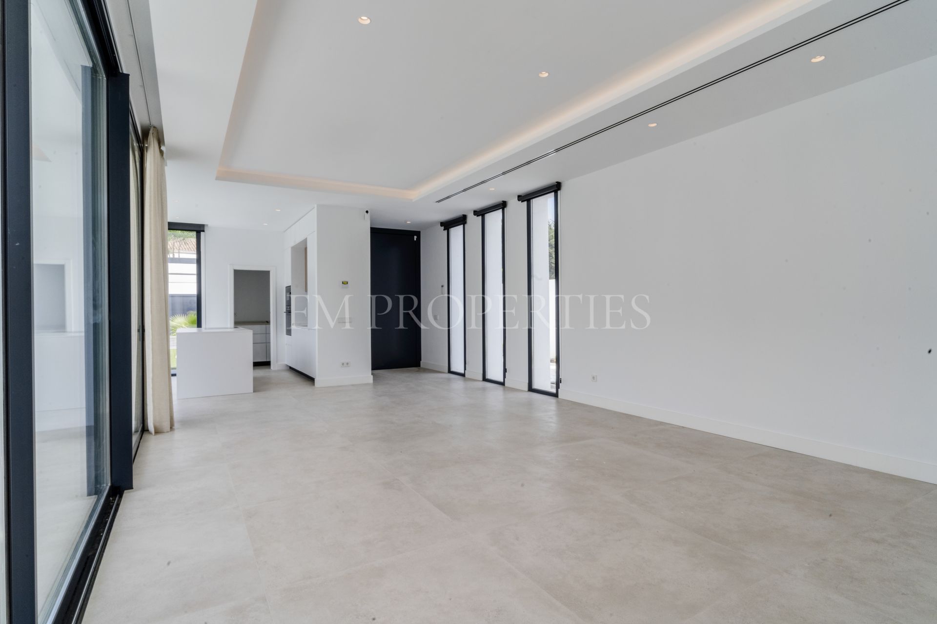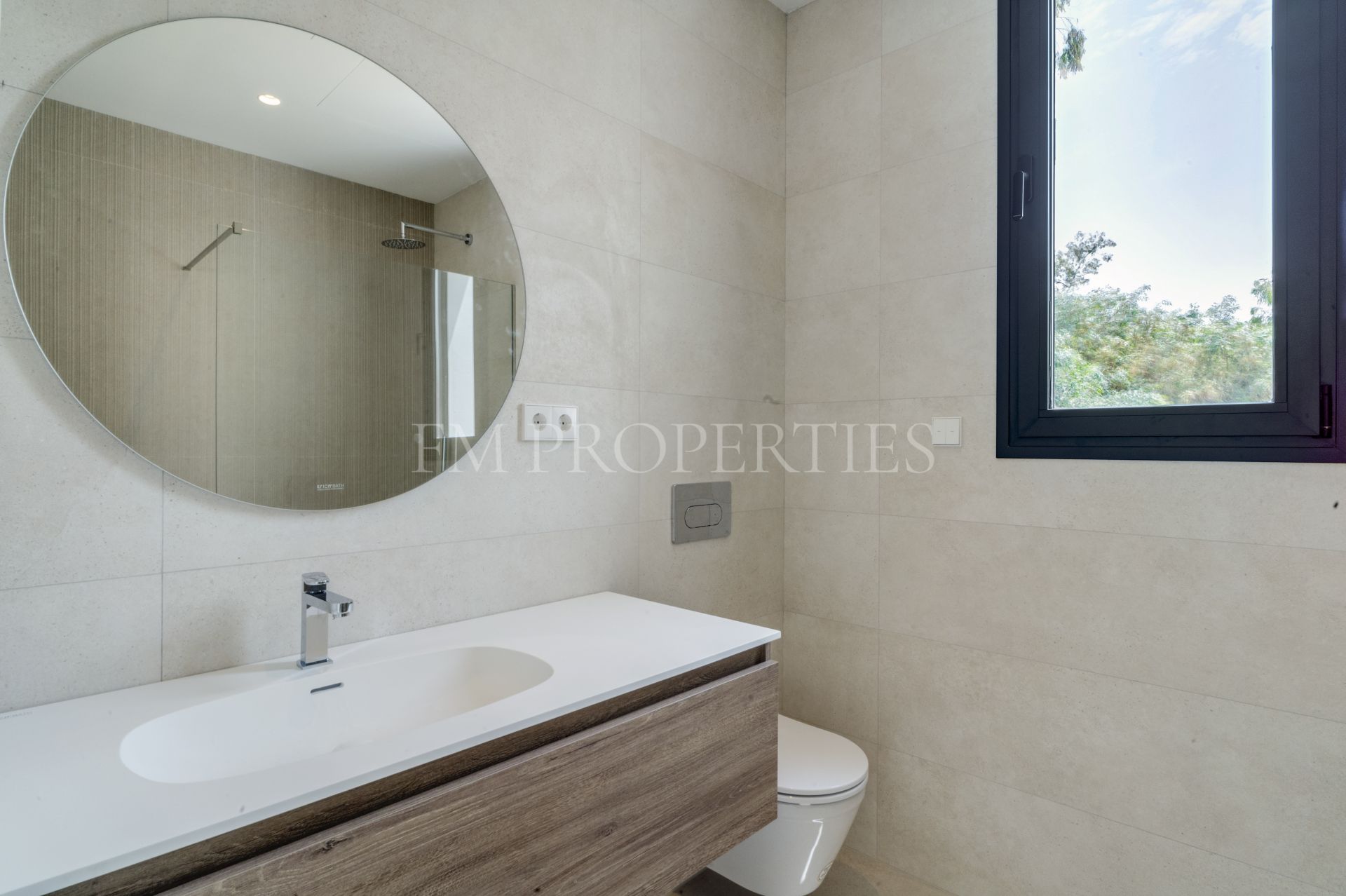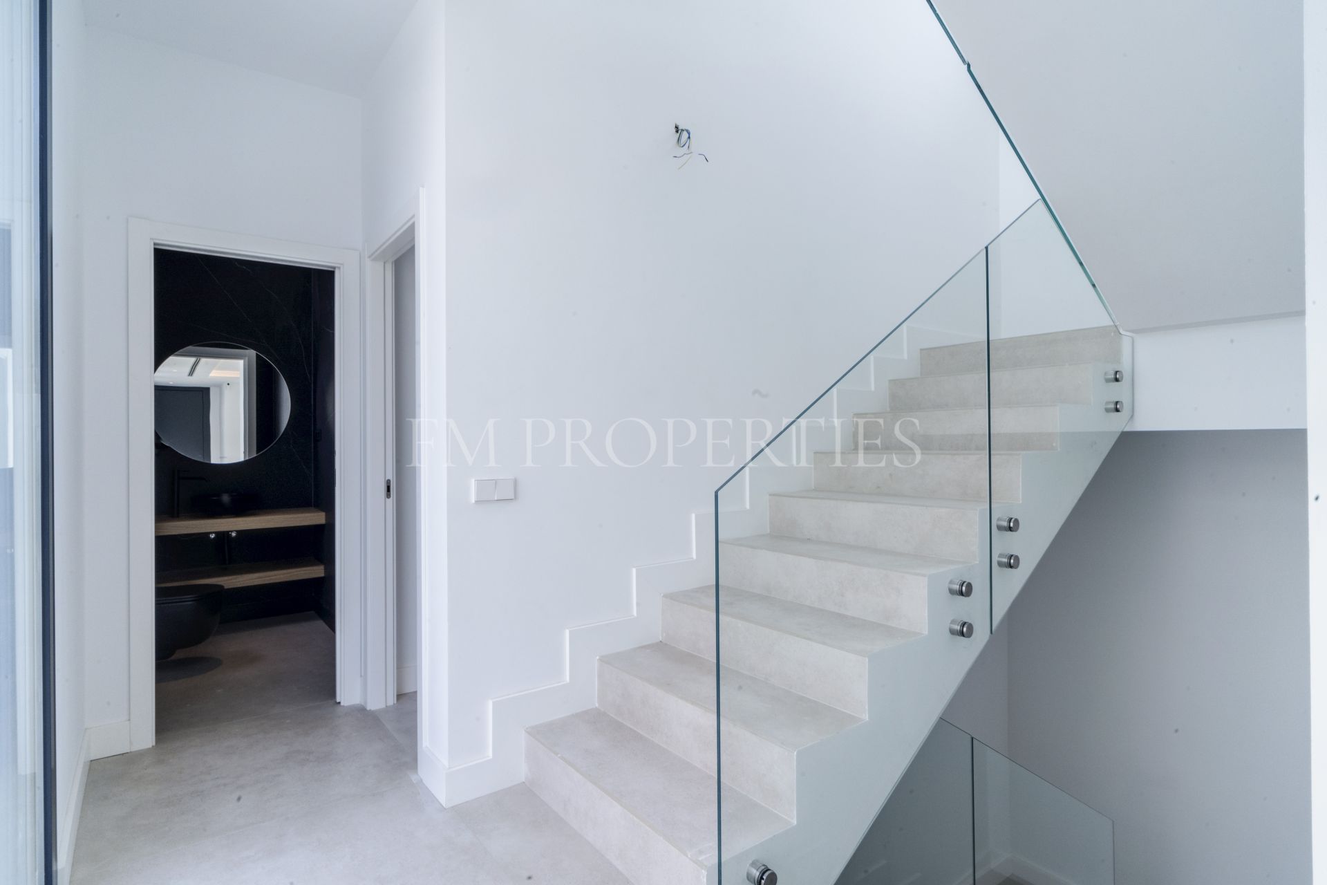 De interieurs kenmerken zich door hun moderne stijl, met grote ramen die alle kamers overspoelen met natuurlijk licht en een naadloze verbinding met het exterieur creëren. Een verfijnd huis dat ideaal is voor gezinsleven en gastvrijheid.