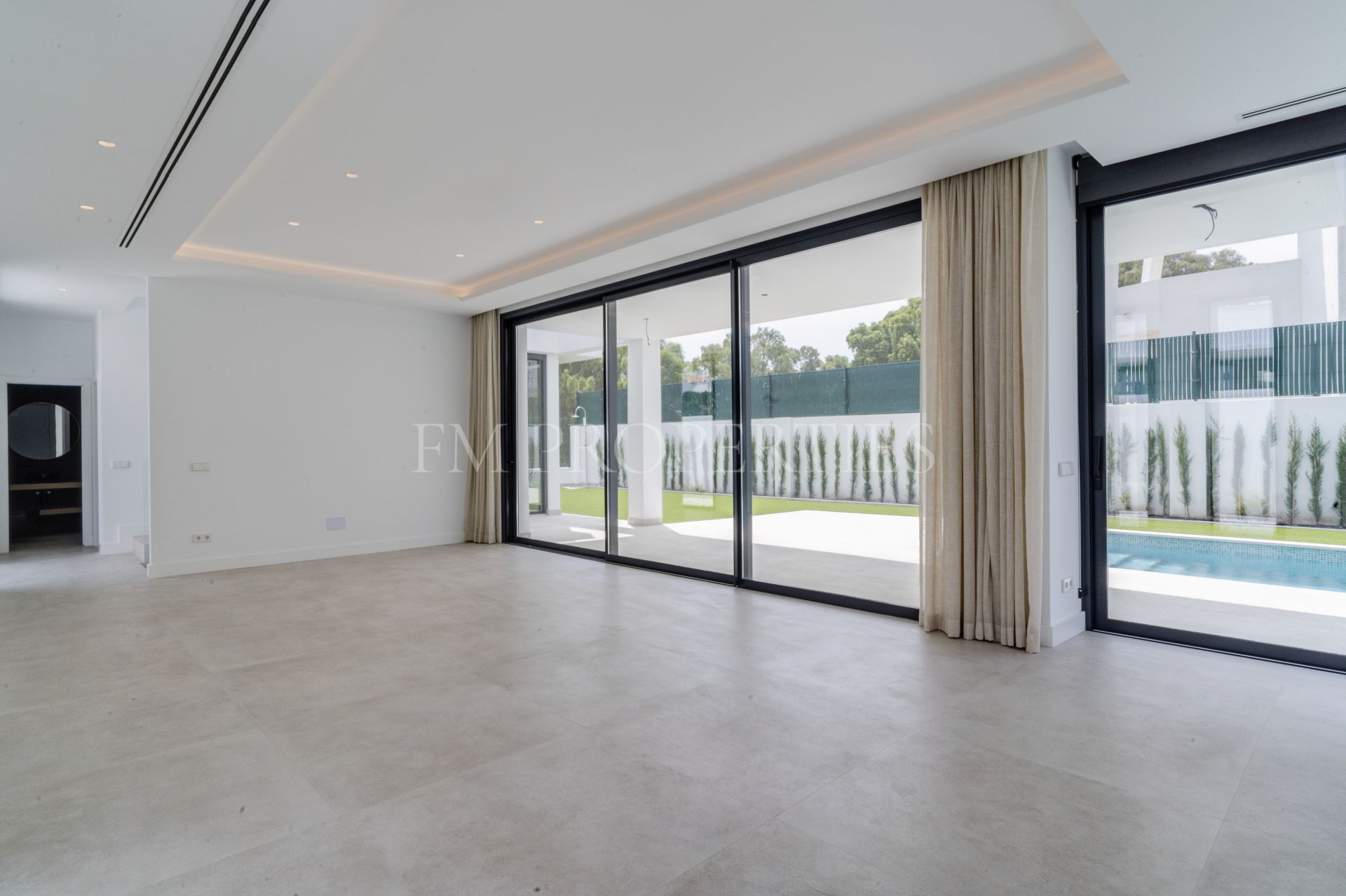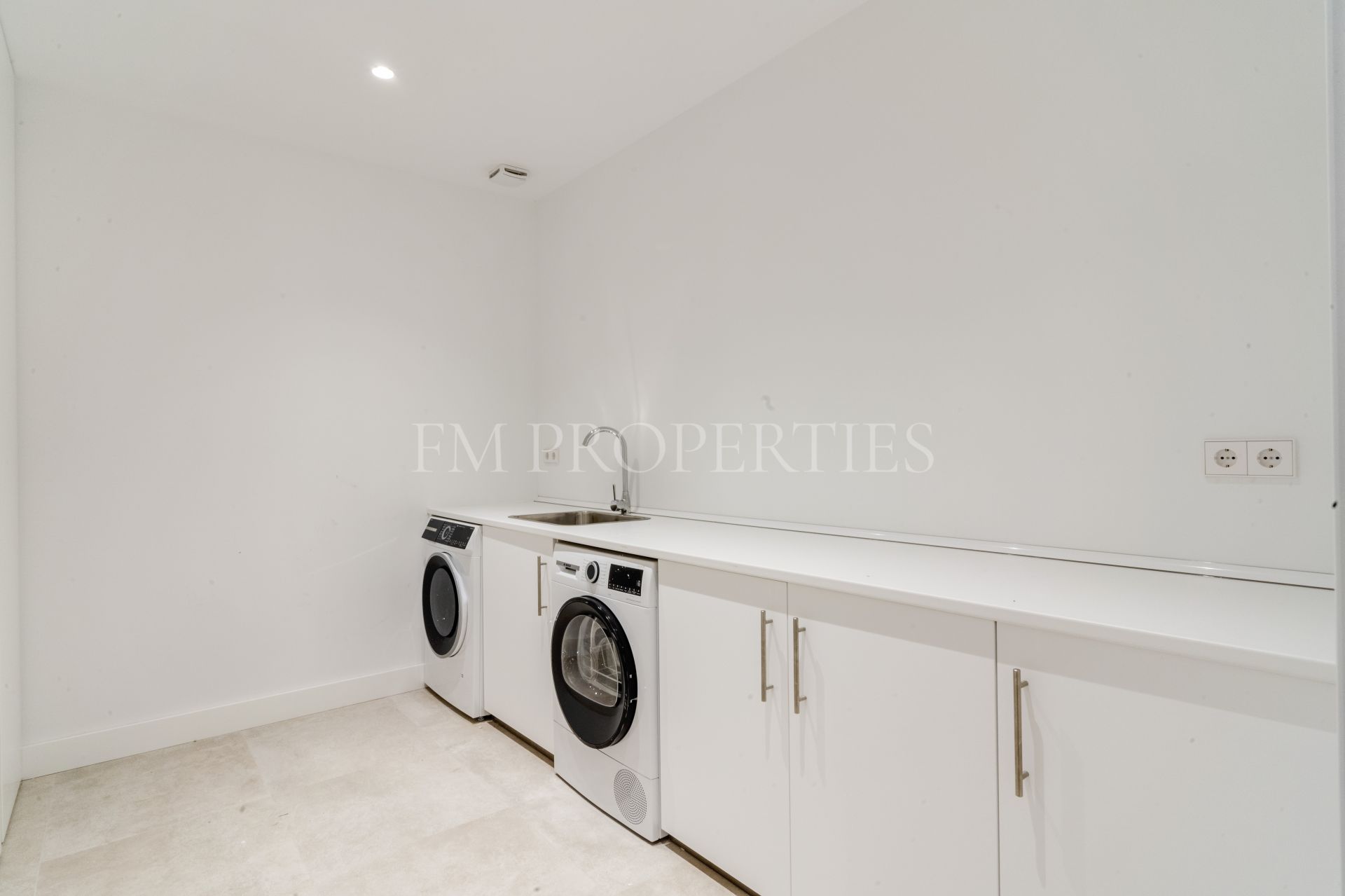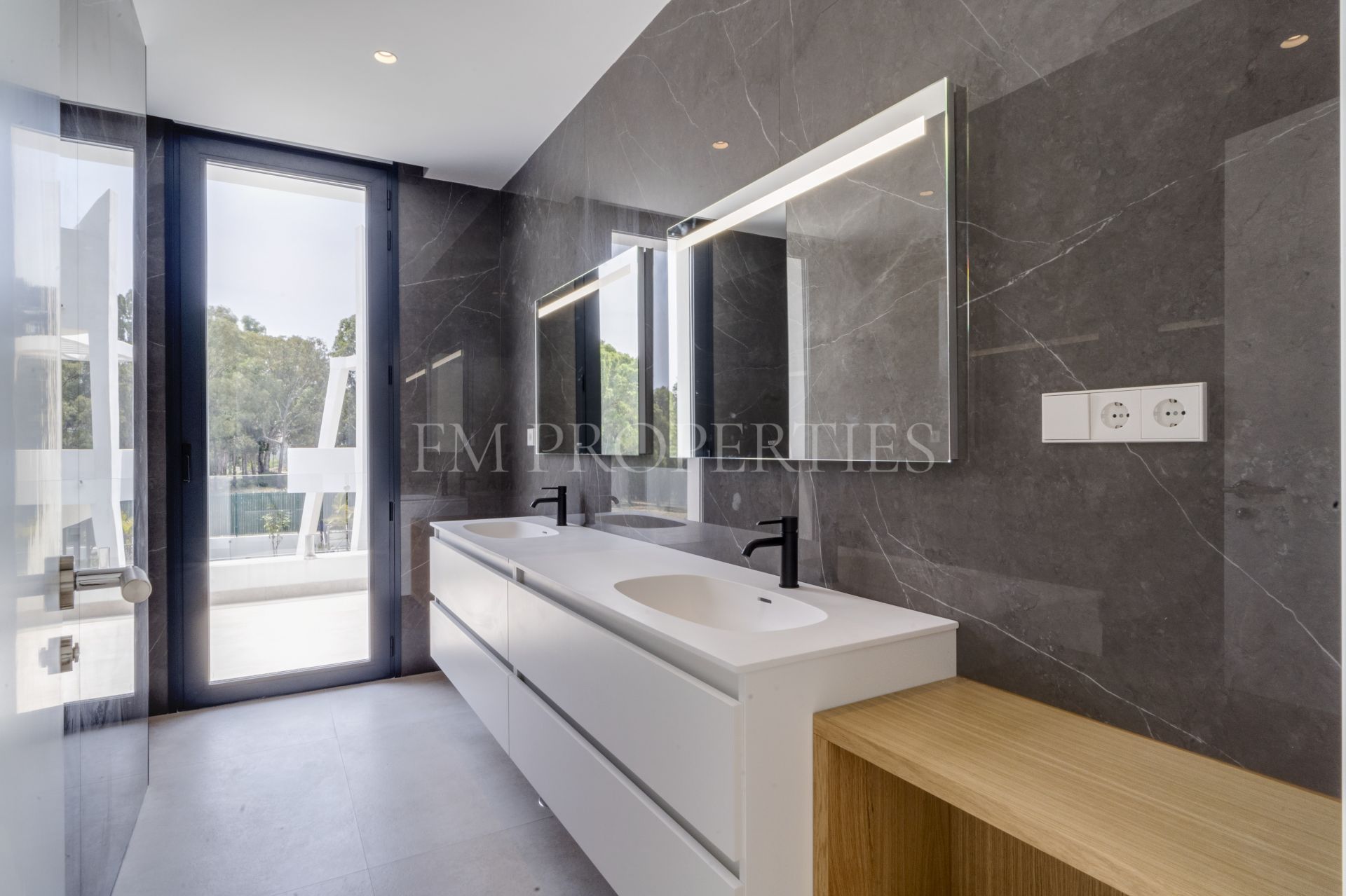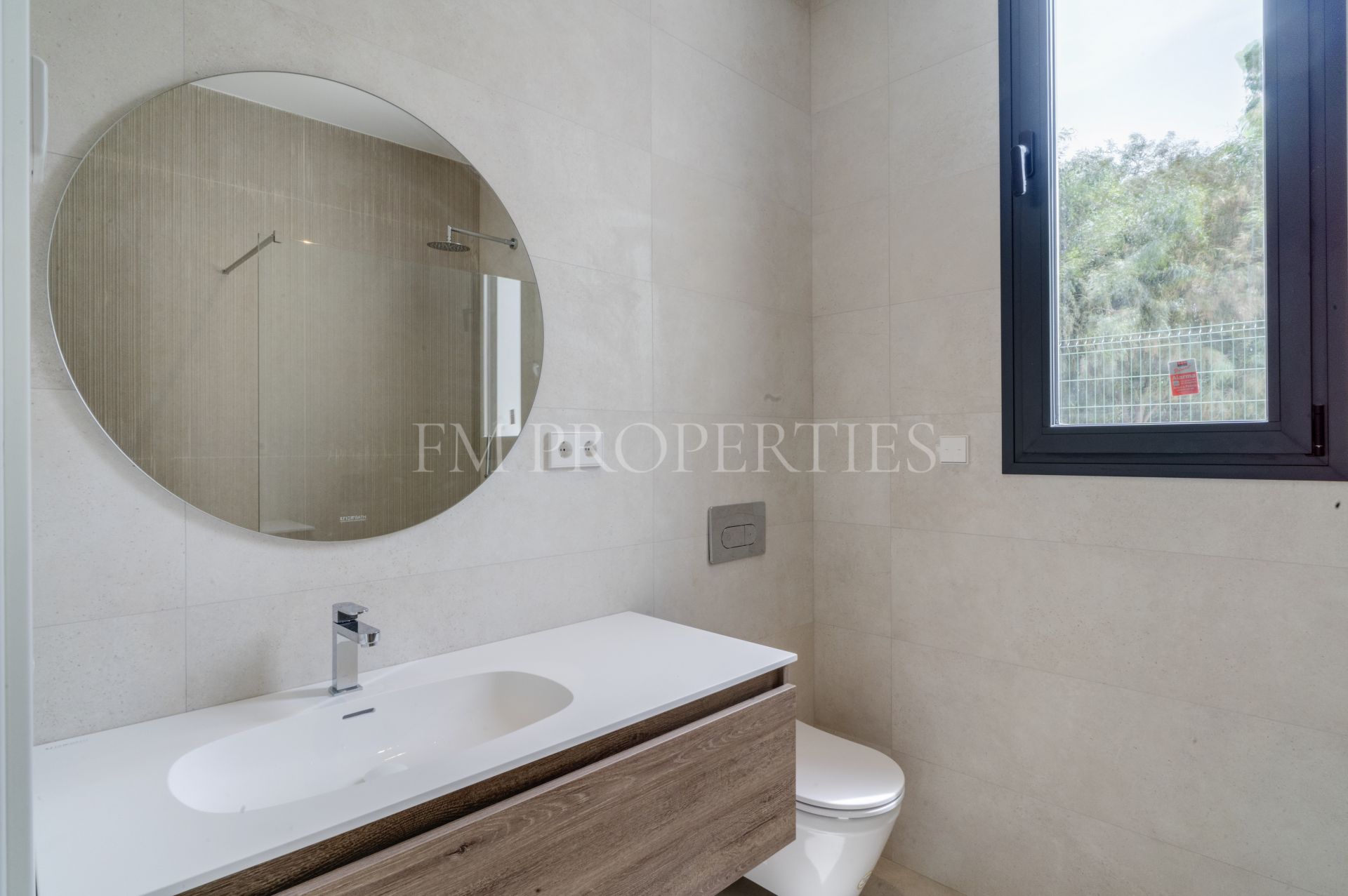 De interieurs kenmerken zich door hun moderne stijl, met grote ramen die alle kamers overspoelen met natuurlijk licht en een naadloze verbinding met het exterieur creëren. Een verfijnd huis dat ideaal is voor gezinsleven en gastvrijheid.