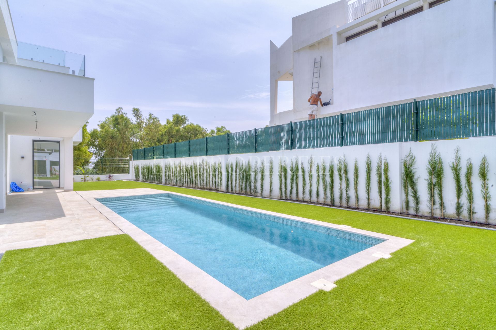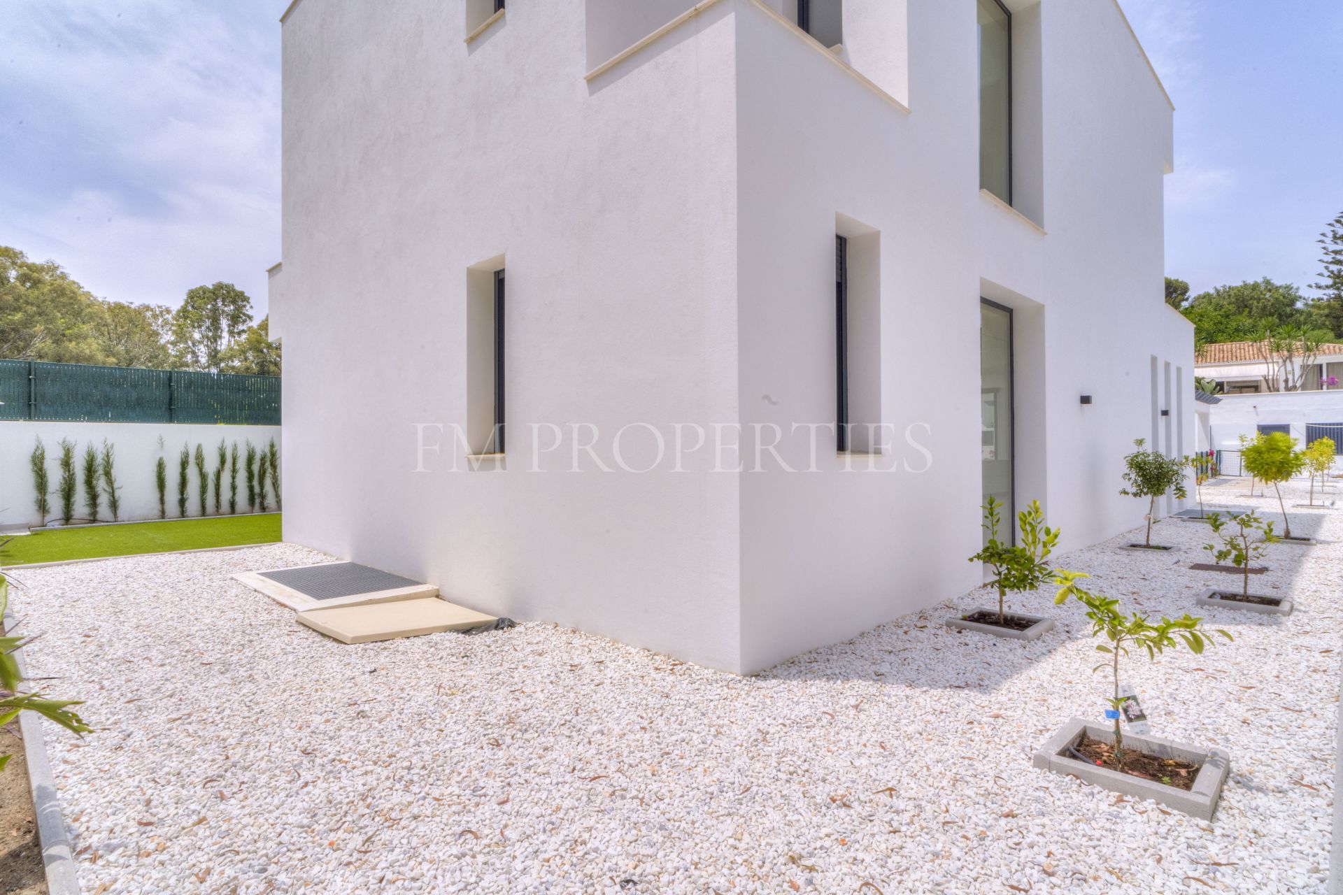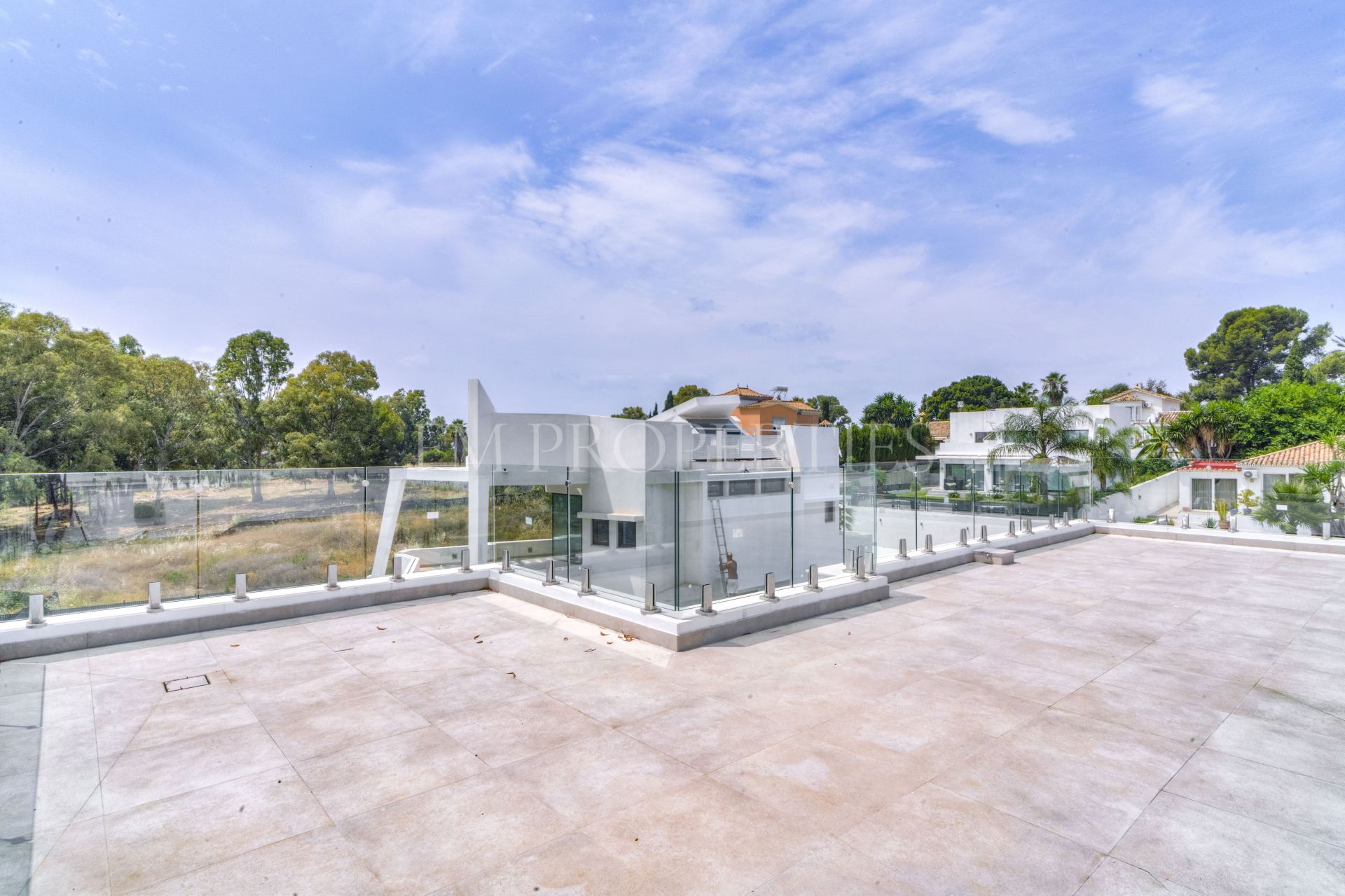 Buiten biedt Villa Dunas aangelegde tuinen die harmonieus opgaan in de beschermde omgeving, samen met een privézwembad dat ideaal is om het hele jaar door van het zonnige klimaat van de Costa del Sol te genieten. Een ruime garage verhoogt de functionaliteit van het pand.
