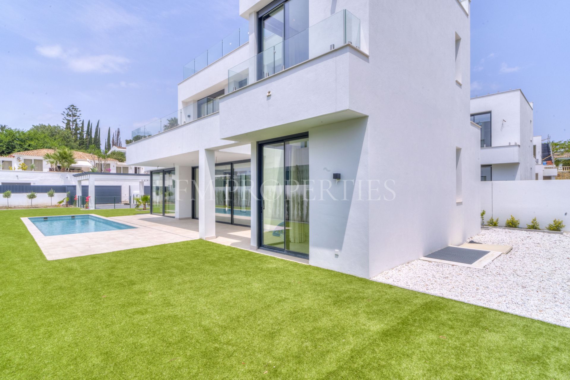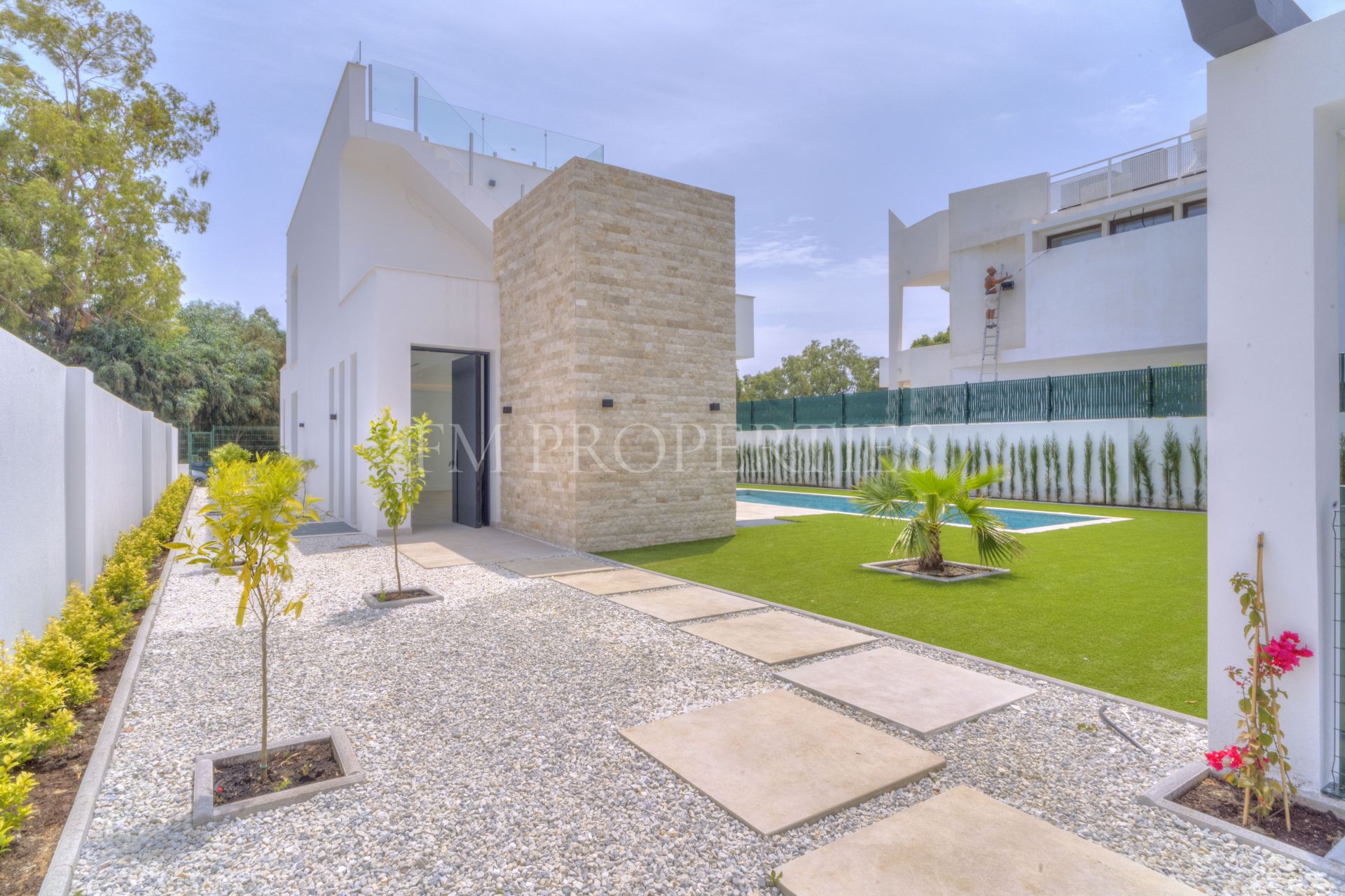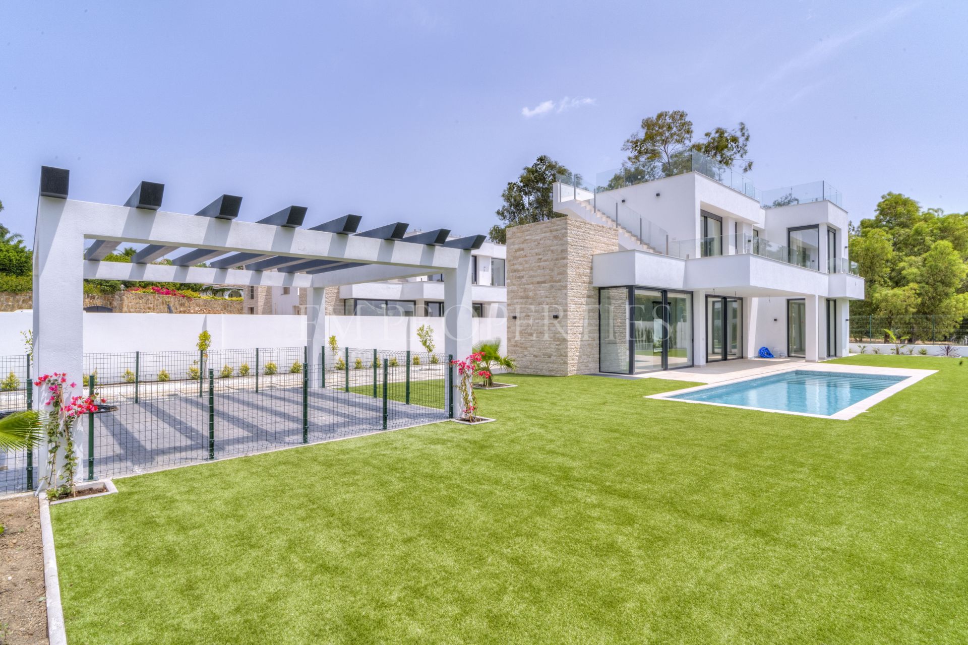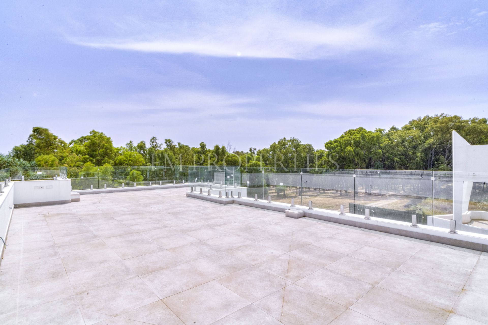 Buiten biedt Villa Dunas aangelegde tuinen die harmonieus opgaan in de beschermde omgeving, samen met een privézwembad dat ideaal is om het hele jaar door van het zonnige klimaat van de Costa del Sol te genieten. Een ruime garage verhoogt de functionaliteit van het pand.