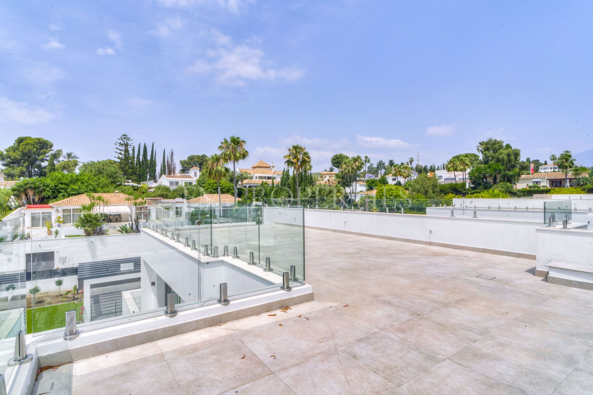 Gelegen op een bevoorrechte locatie naast een beschermd natuurgebied en op loopafstand van winkelcentra en voorzieningen, is Villa Dunas een moderne vrijstaande luxevilla die privacy, exclusiviteit en de authentieke mediterrane levensstijl combineert. Strategisch gesitueerd tussen Marbella, Benahavís en Puerto Banús, biedt deze woning de perfecte balans tussen rust en nabijheid van de belangrijkste bestemmingen van de Costa del Sol.
