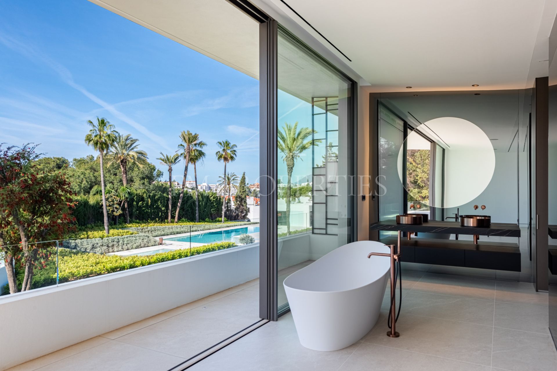 Gelegen in het hart van de Golden Mile van Marbella is Vilas 1 de meest exclusieve woning binnen een kleinschalig project van slechts zes eigentijdse villa’s. Dankzij de bevoorrechte frontline-ligging is dit de enige villa die werkelijk panoramisch zeezicht biedt — een zeldzaam kenmerk op deze gewilde locatie.