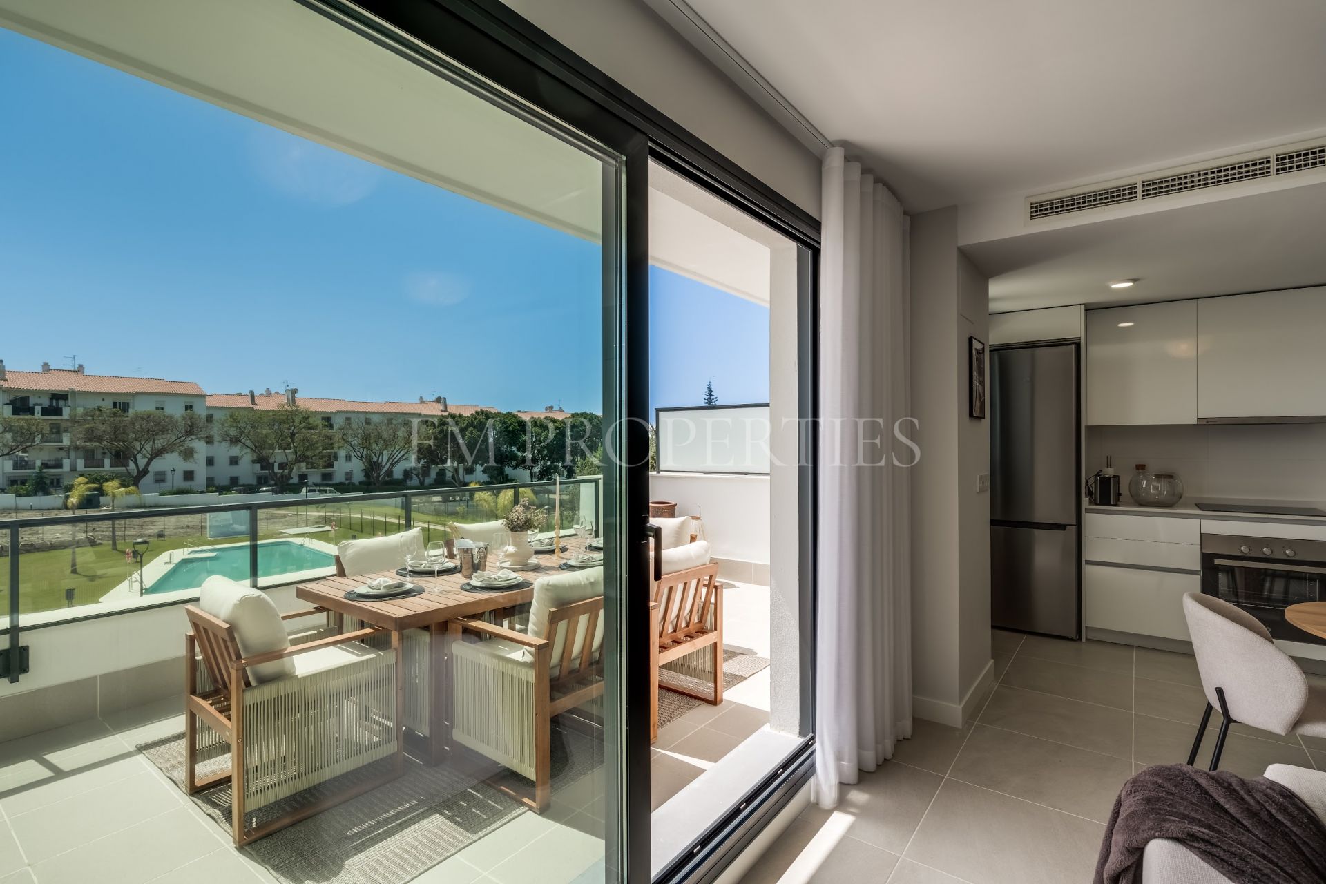 De ligging is ideaal: het strand ligt op slechts 20 minuten wandelen, de Sublim Beach Club bereikt u in 4 minuten met de auto, het centrum van Estepona is slechts 8 minuten rijden en Marbella ligt op 10 minuten rijden. Dit maakt het appartement tot een uitstekende keuze, of u nu op zoek bent naar een vakantiewoning, een permanente verblijfplaats of een investering met hoog verhuurpotentieel.