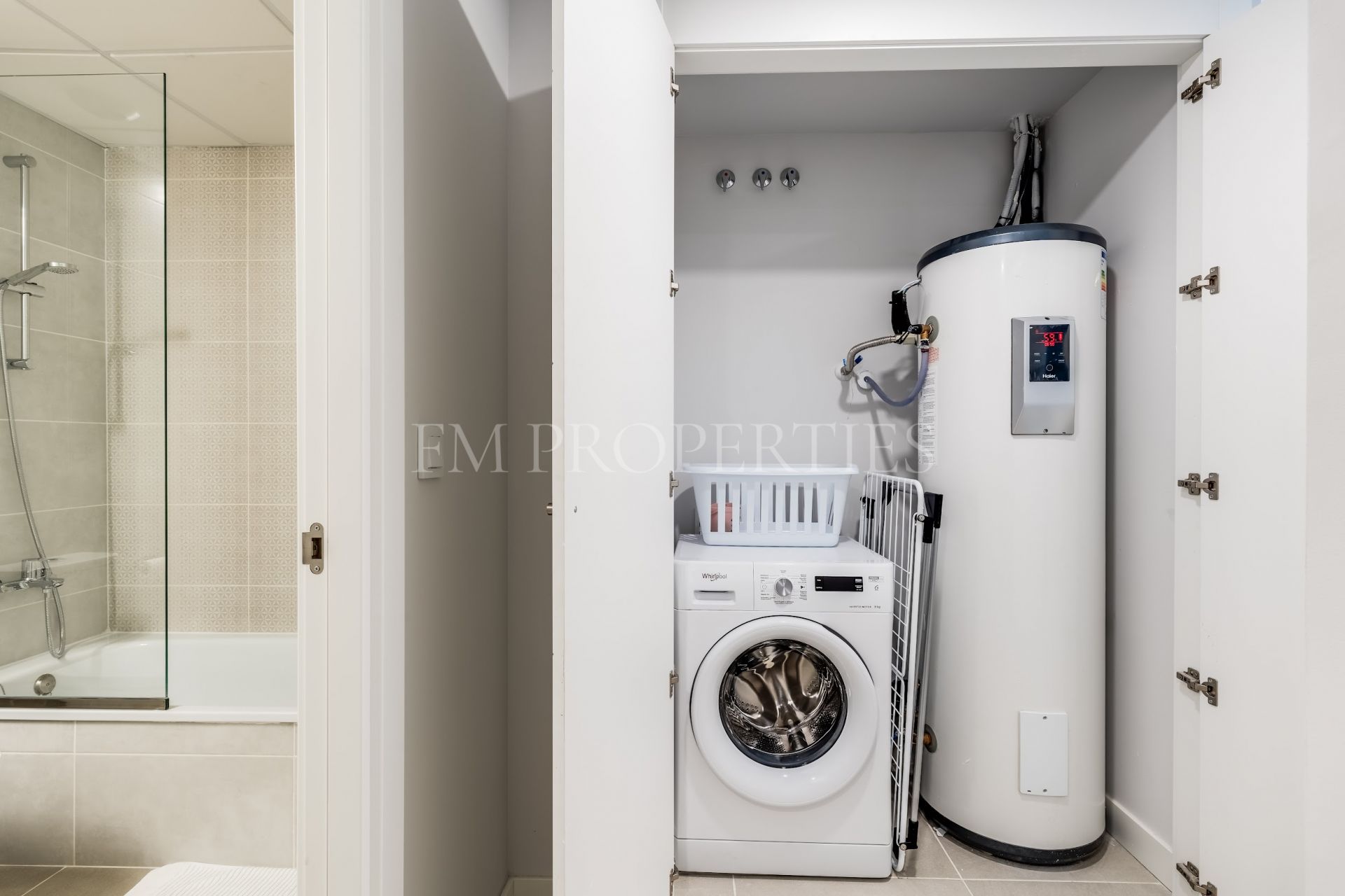 Het appartement wordt volledig gemeubileerd verkocht en is instapklaar, waardoor direct woongenot mogelijk is. Binnen een veilige, afgesloten gemeenschap kunnen bewoners gebruikmaken van eersteklas voorzieningen, waaronder een zwembad, een fitnessruimte en een coworkingruimte. Bovendien beschikt de woning over een ondergrondse parkeerplaats en een privébergruimte.